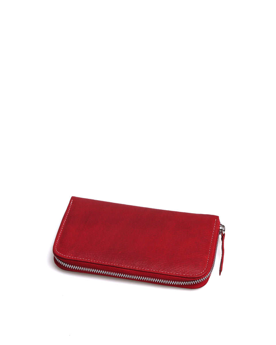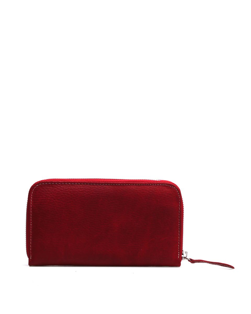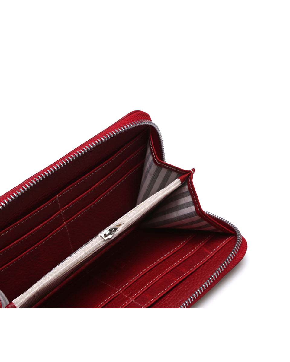 KLOSE es una billetera amplia de cuero. Está realizada en cuero vacuno graneado y forrada en textil rayado. Cuenta con un cierre de níquel color plata. El interior es espacioso y compartimentado. Una de sus solapas tiene cierre y cuenta con espacio para tarjetas y billetes.