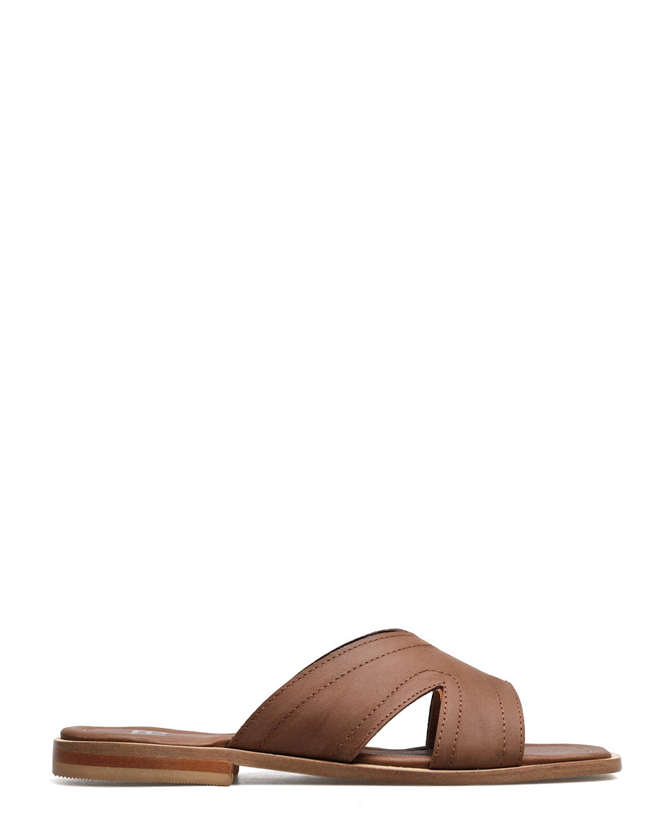 ALCALA es una sandalia plana realizada en cuero vacuno y forrada en cuero. Su diseño geométrico es sentador y atemporal. La base es elegante, con un pequeño taco. ALCALA es un calzado práctico, fácil de llevar con cualquier conjunto y calza bien incluso si tu pie es ancho o de empeine alto.