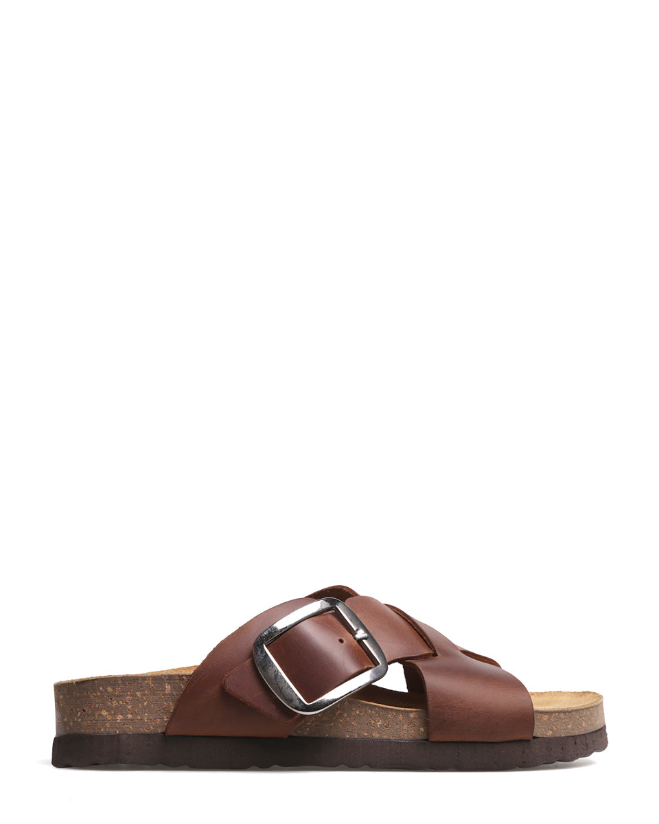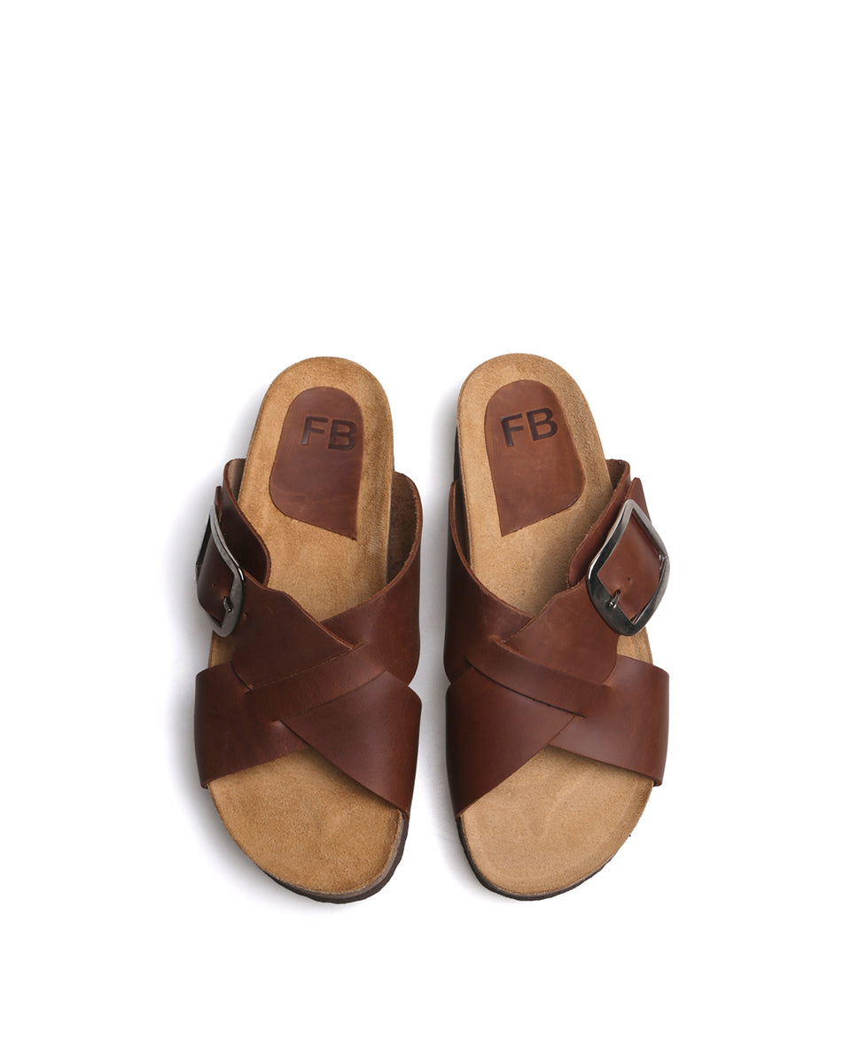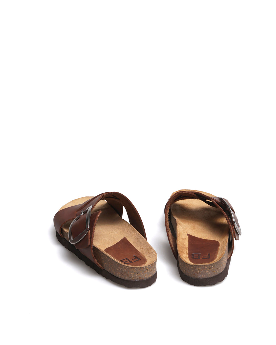 BAPE es una sandalia chata de calce directo. Está realizada en cuero vacuno graneado con terminación al corte. Sus tiras se cruzan logrando una buena ergonomía. Su hebilla de níquel realza el diseño. La base es de corcho con látex por lo cual es liviana y flexible. BAPE es un calzado práctico y canchero, ideal para los días de verano.