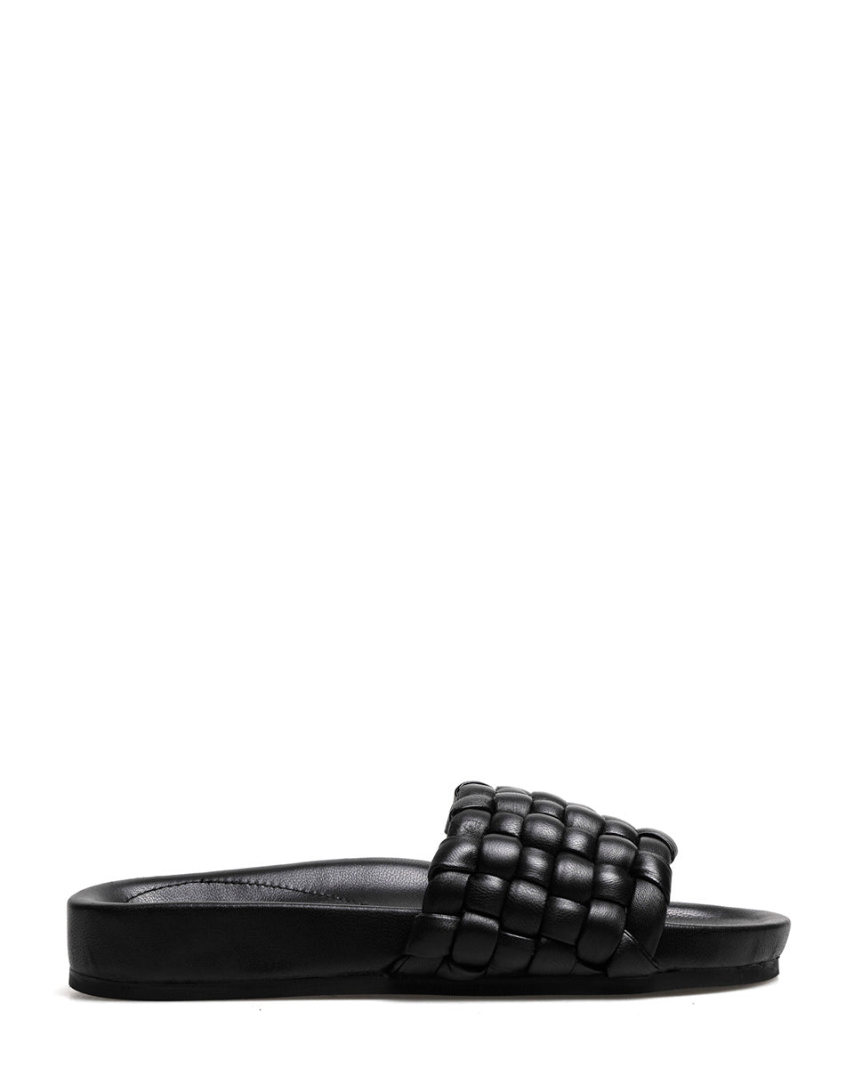 BAY es una sandalia de calce directo monocromática. Está realizada en cuero y su faja se compone de tiras acolchadas y entrelazadas. La base es ergonómica con una plantilla cómoda y flexible que está forrada en el mismo material.