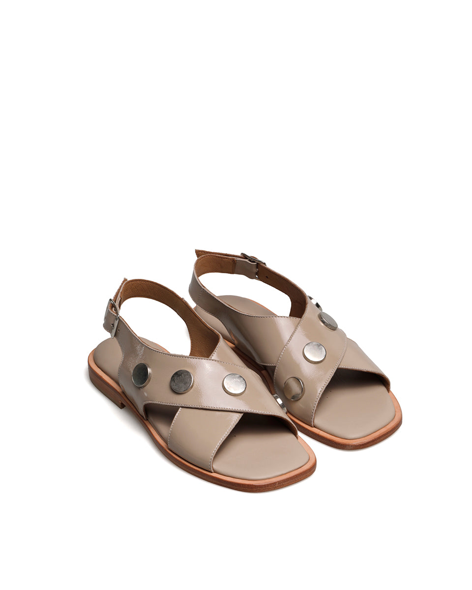 BILY es una sandalia clásica de capellada cerrada en charol de cuero, forrada en cuero. Su base de suela y la vira natural aportan un detalle distintivo que realza el diseño. Con taco bajo y líneas elegantes, es un modelo atemporal pensado para quienes buscan comodidad y refinamiento en un mismo calzado.