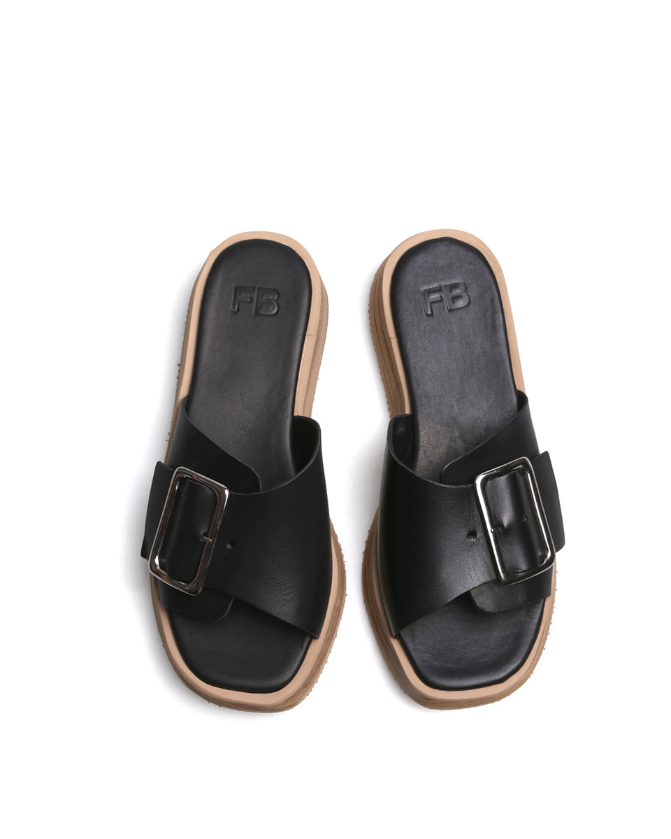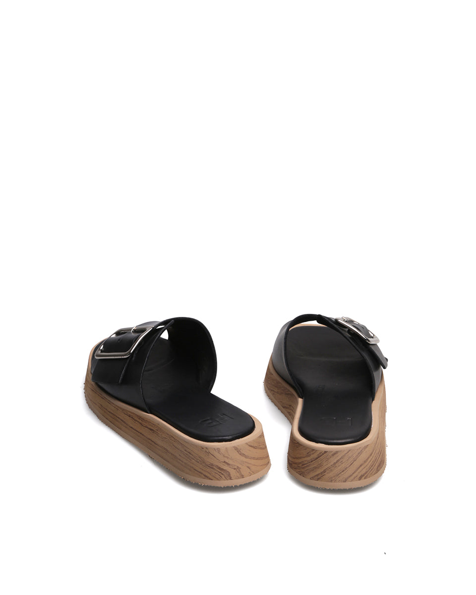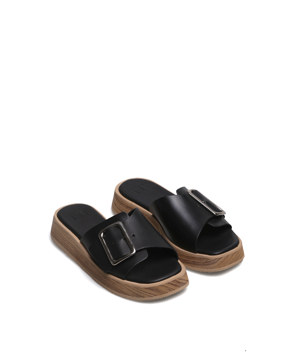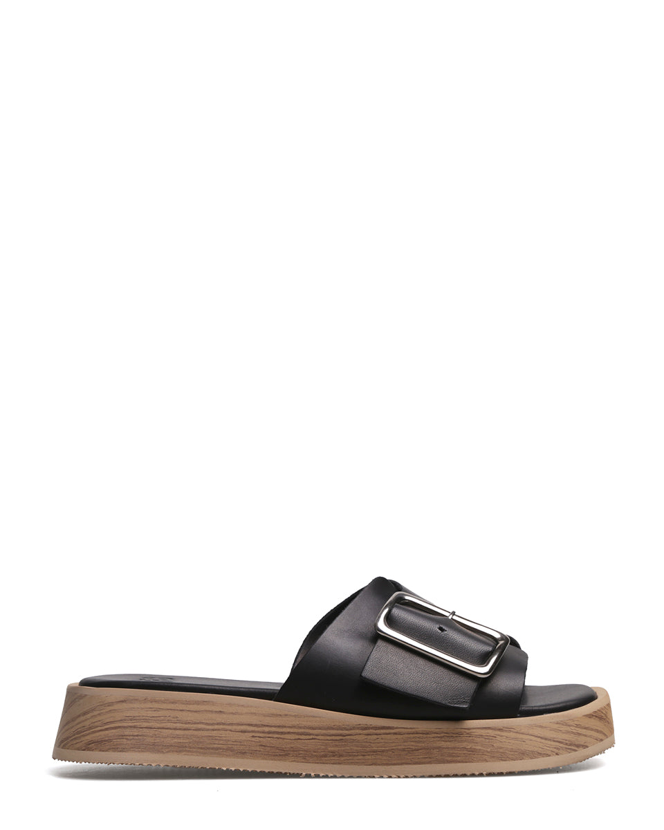 CIPRÉS es una sandalia de cuero con base liviana de EVA símil madera. De confección artesanal, combina una capellada con maxi hebilla metálica y una plataforma cómoda que suma altura sin perder confort. Un diseño actual y versátil para todos los días.
