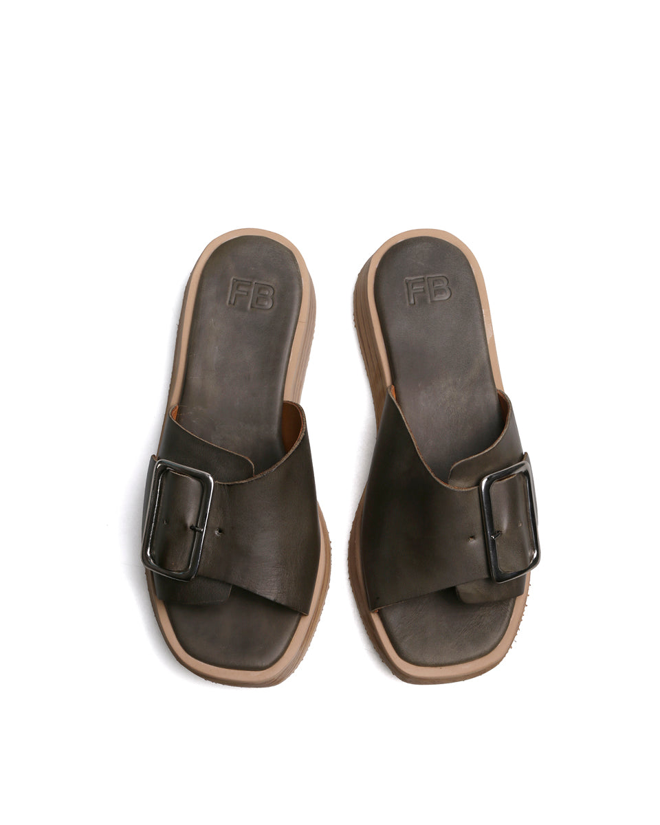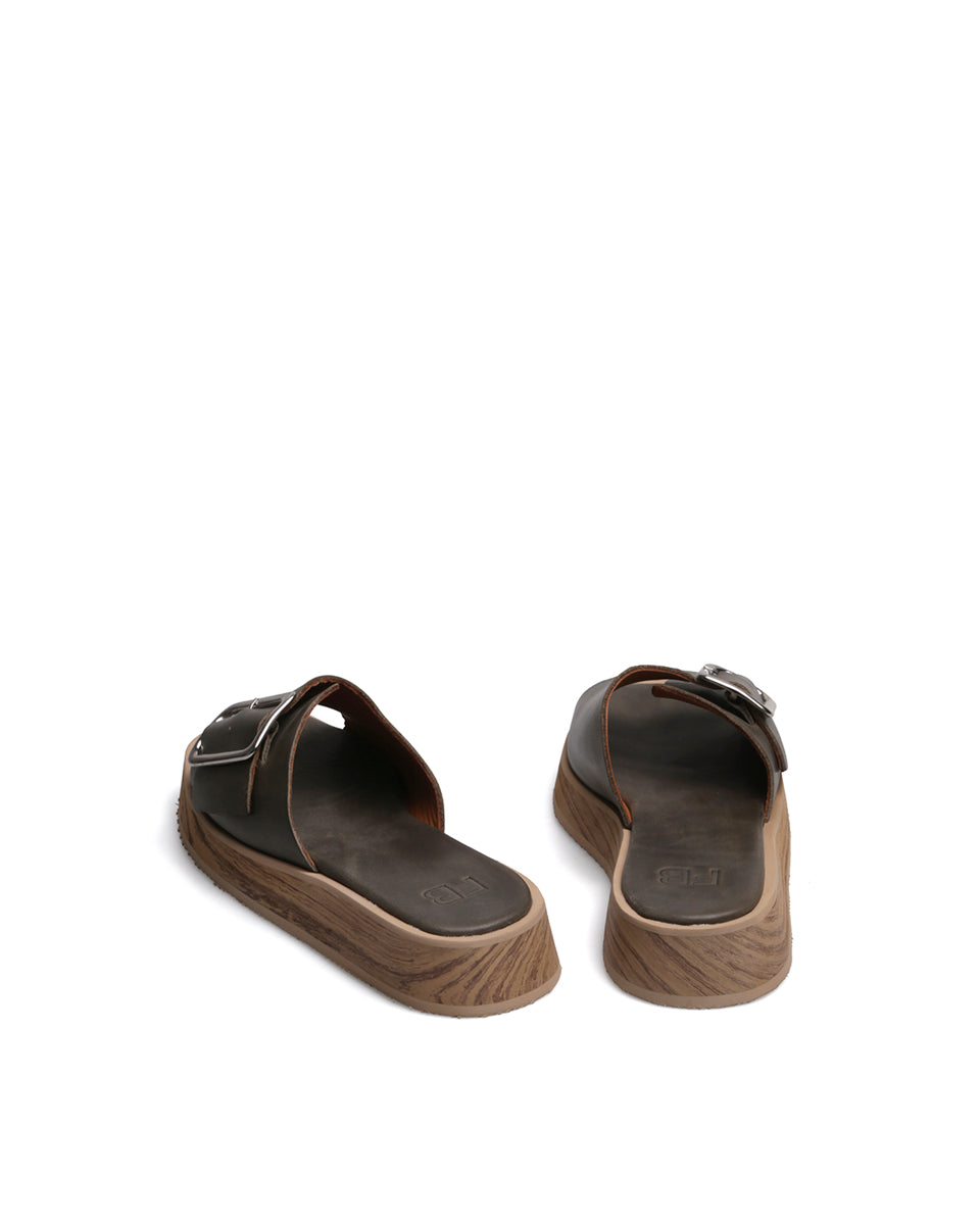 CIPRÉS es una sandalia de cuero con base liviana de EVA símil madera. De confección artesanal, combina una capellada con maxi hebilla metálica y una plataforma cómoda que suma altura sin perder confort. Un diseño actual y versátil para todos los días.
