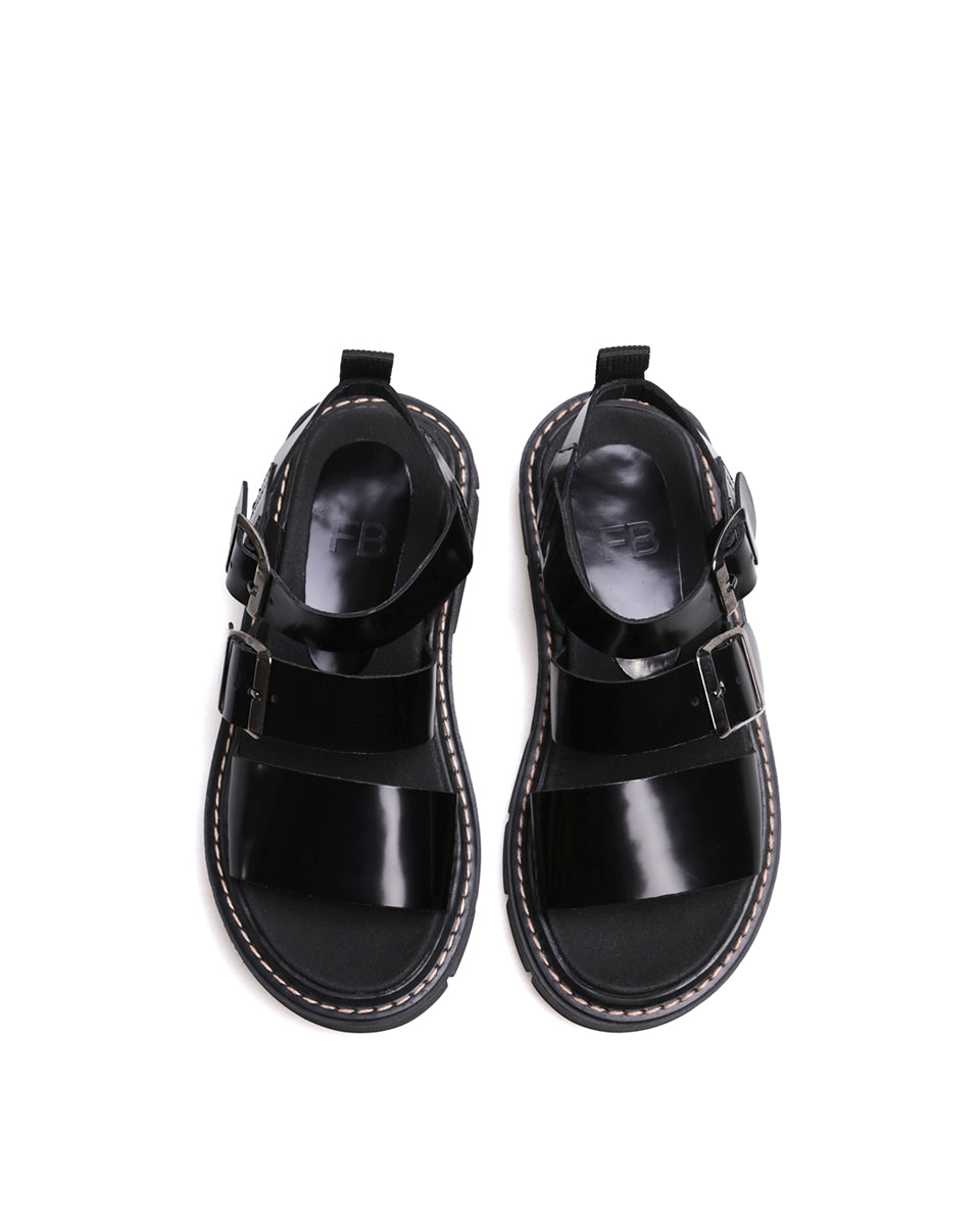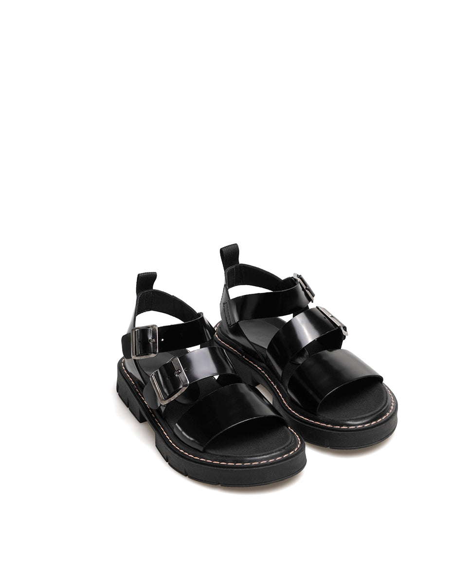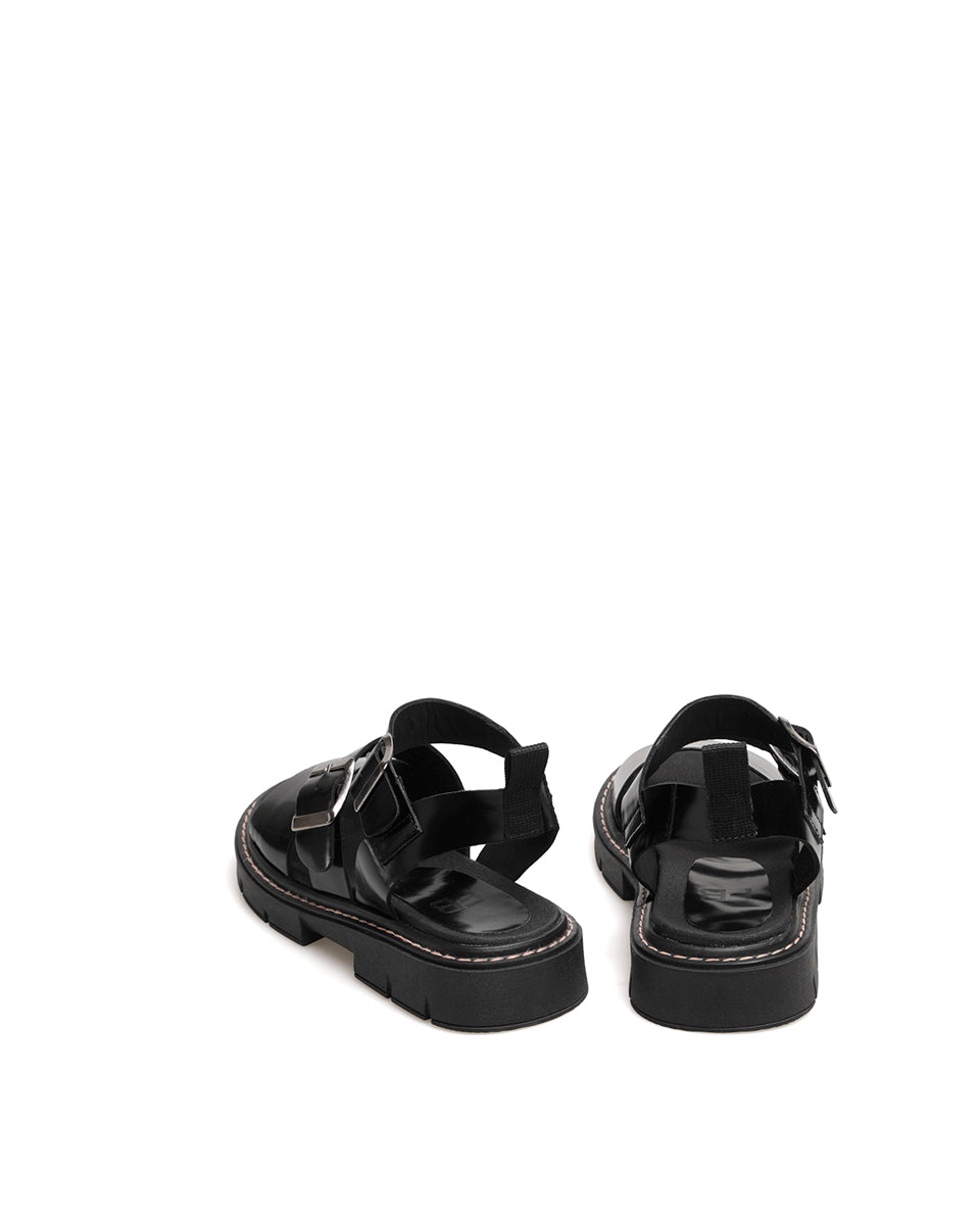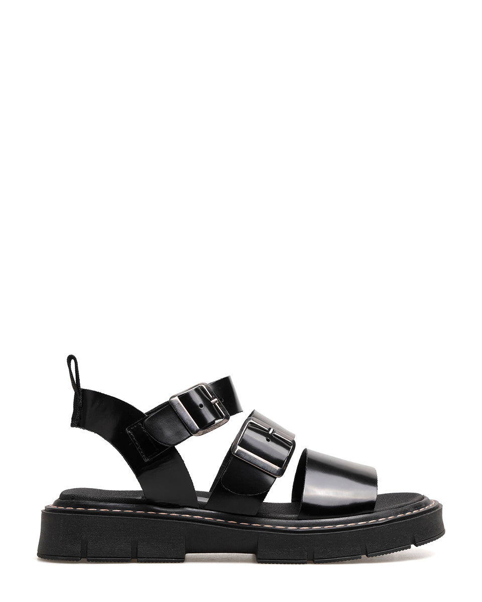 COVENT es una sandalia de cuero graneado negro con doble hebilla regulable y base con volumen. Combina diseño actual y comodidad, logrando un calzado versátil que aporta personalidad a tus looks de todos los días.