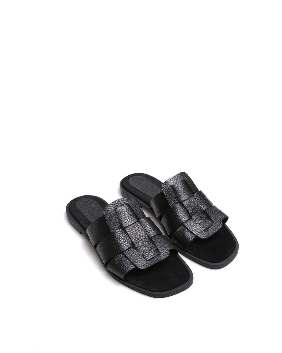 FINI es un modelo urbano y súper cómodo, con tiras cruzadas en cuero floater suave y un tejido ancho que se adapta al pie sin ajustarlo. La plantilla es acolchada tipo gamuza, ideal para uso diario porque amortigua y evita deslizamientos. Su base liviana y flexible la convierte en una sandalia práctica para caminar, fresca y de calce rápido. Un diseño minimalista y moderno para todos los días