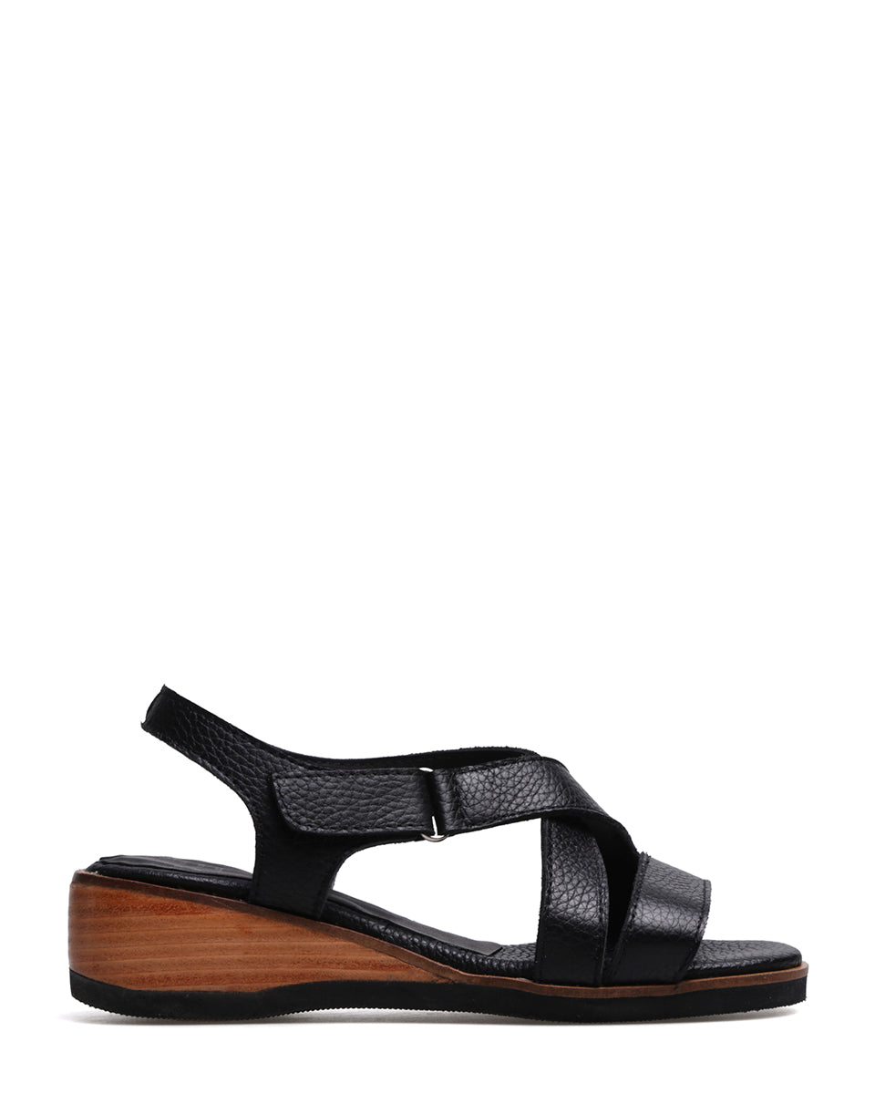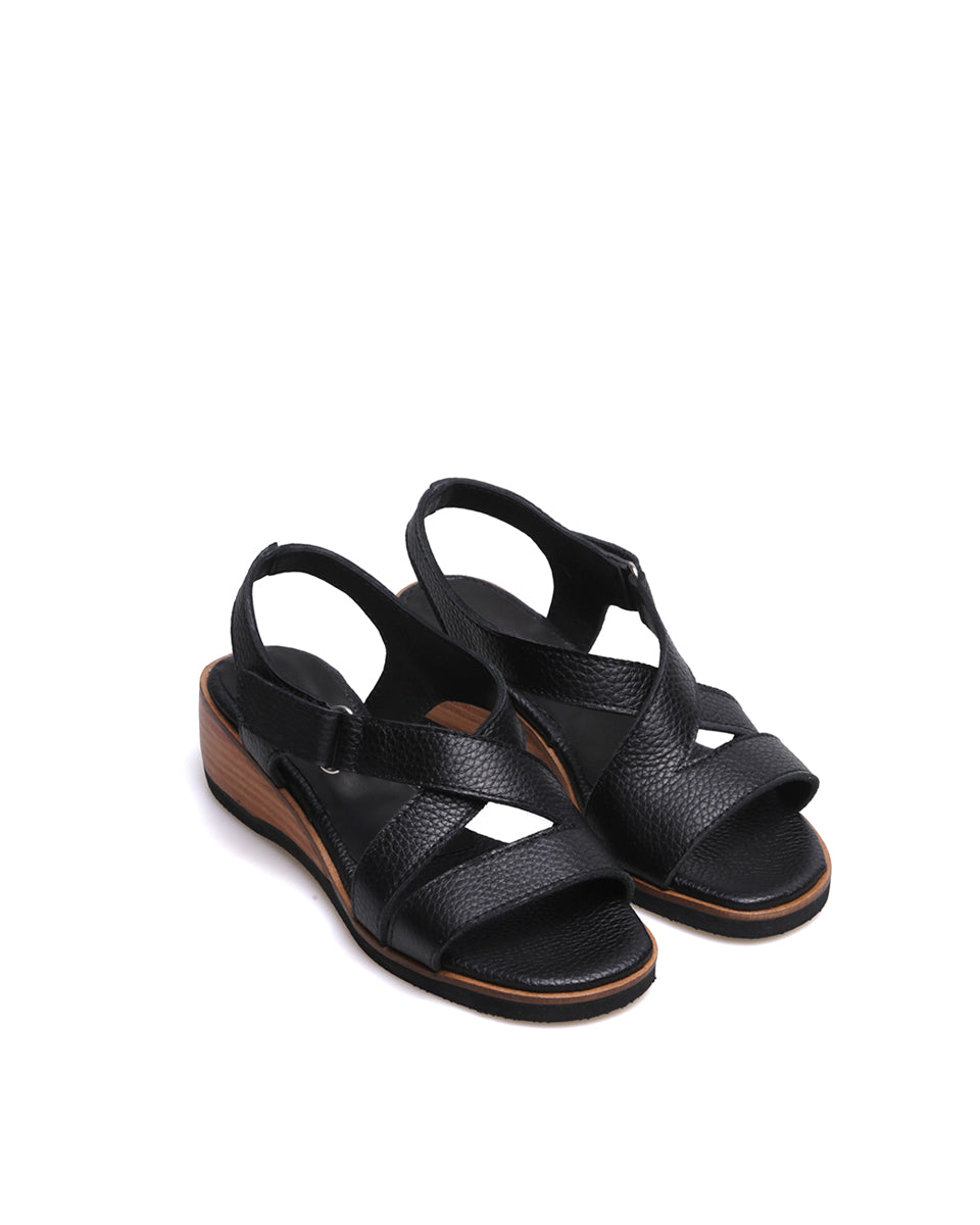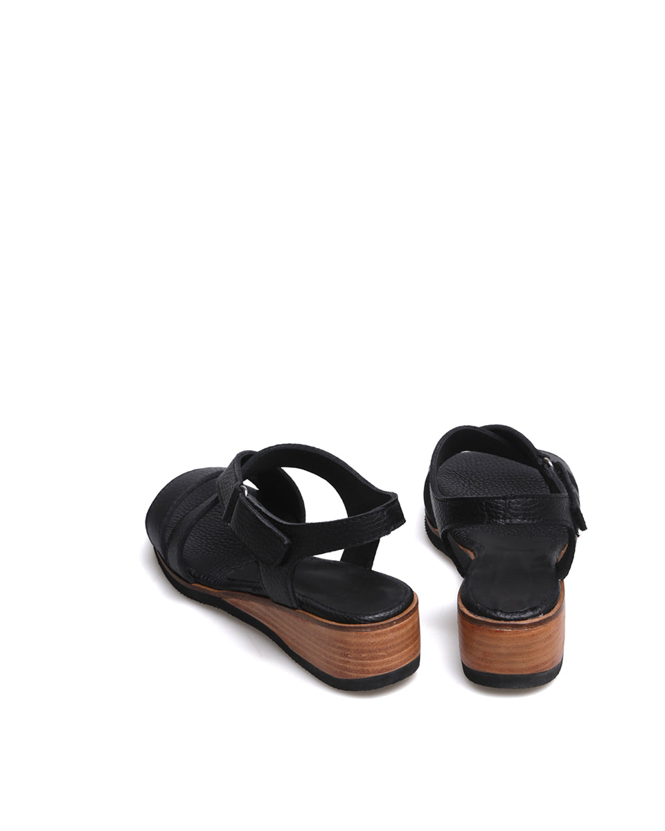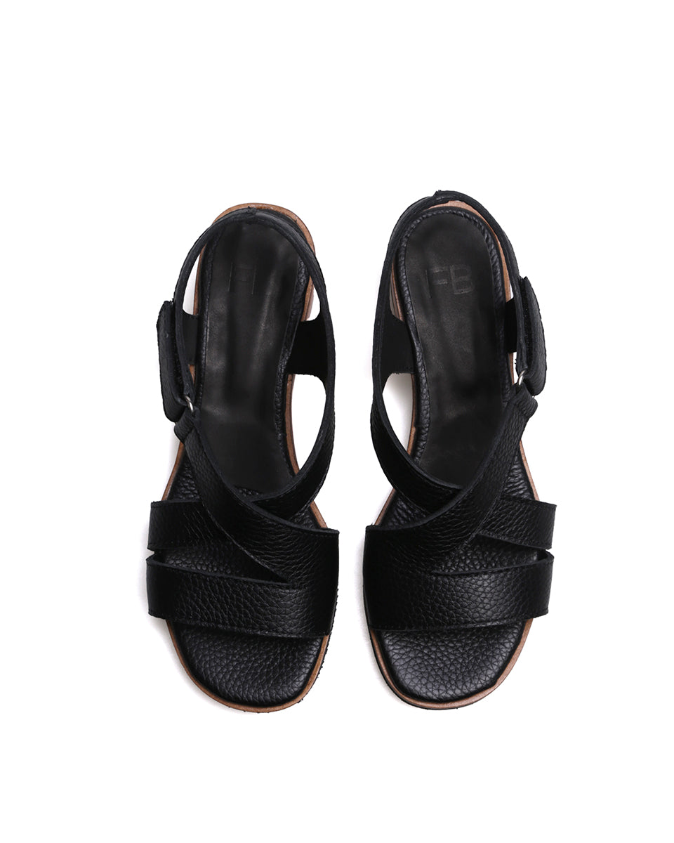 GANTE es una sandalia clásica de cuero con tiras cruzadas que estilizan el pie y una tira recta al frente para mayor sujeción. Se ajusta fácilmente con velcro y cuenta con un taco chino de altura justa y pendiente equilibrada, lo que la hace cómoda y práctica. Su terminación foliada aporta un acabado elegante, ideal para un uso cotidiano con estilo atemporal.