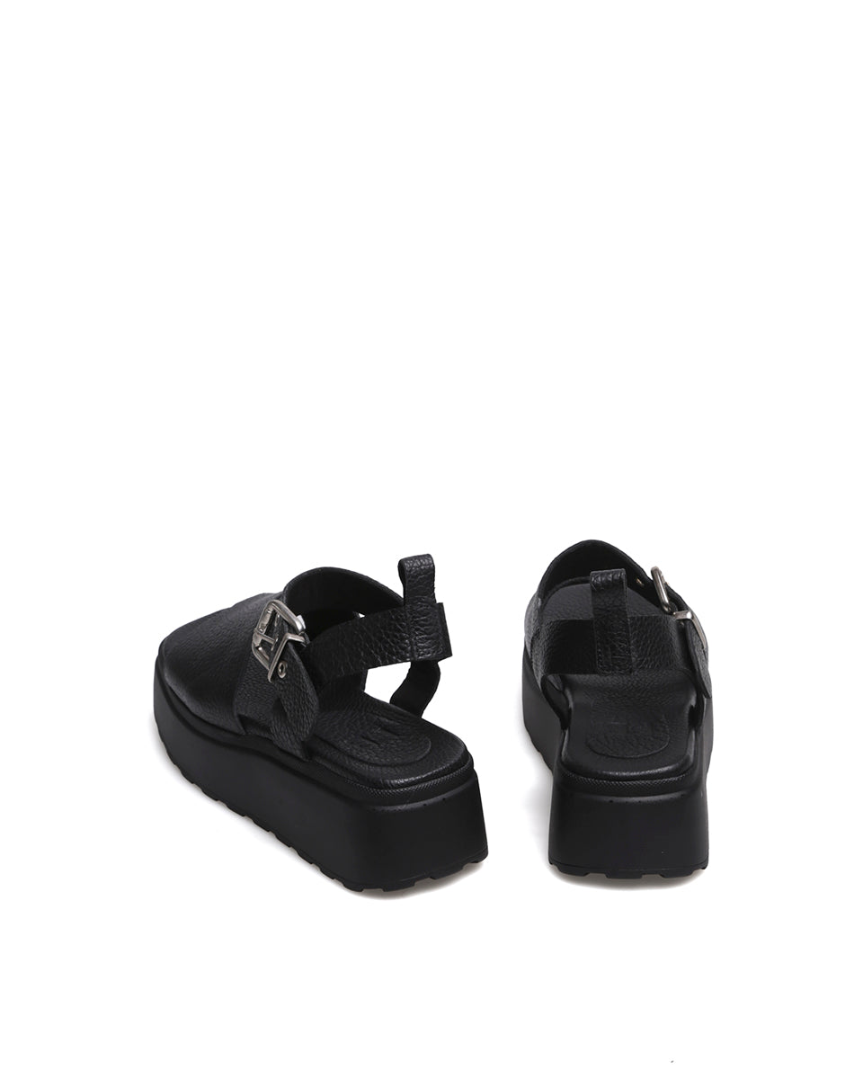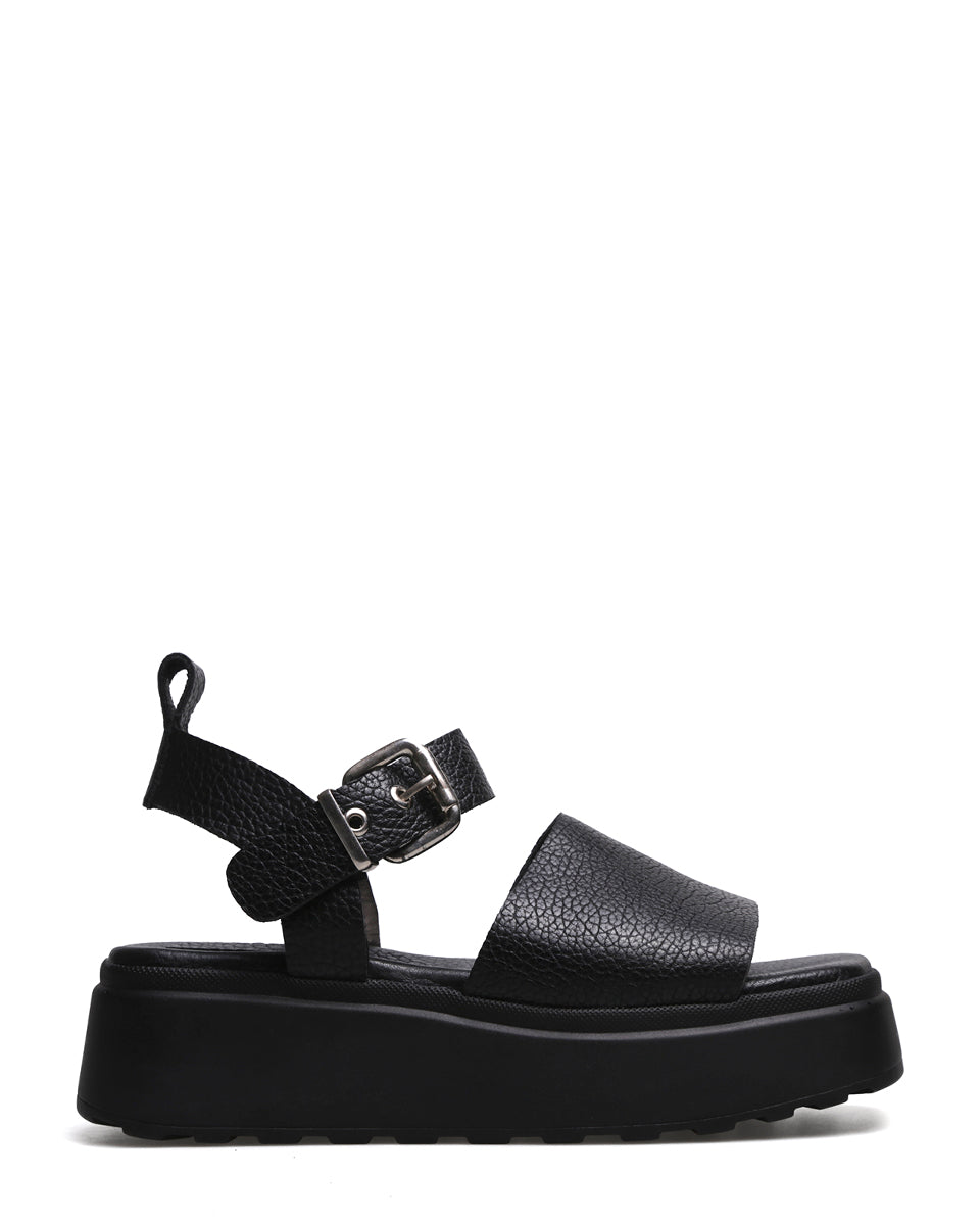 LENA es una sandalia de cuero con plataforma. Tiene una faja ancha de cuero graneado y está forrada en cuero. El talón abierto y la pulsera con hebilla metálica regulable aseguran un calce firme y adaptable. Con estética moderna y urbana, LENA es ideal para usar todos los días: aporta altura, confort y un look fresco que se adapta a jeans, vestidos o conjuntos más arreglados. Una sandalia versátil y resistente, hecha para acompañarte toda la temporada.