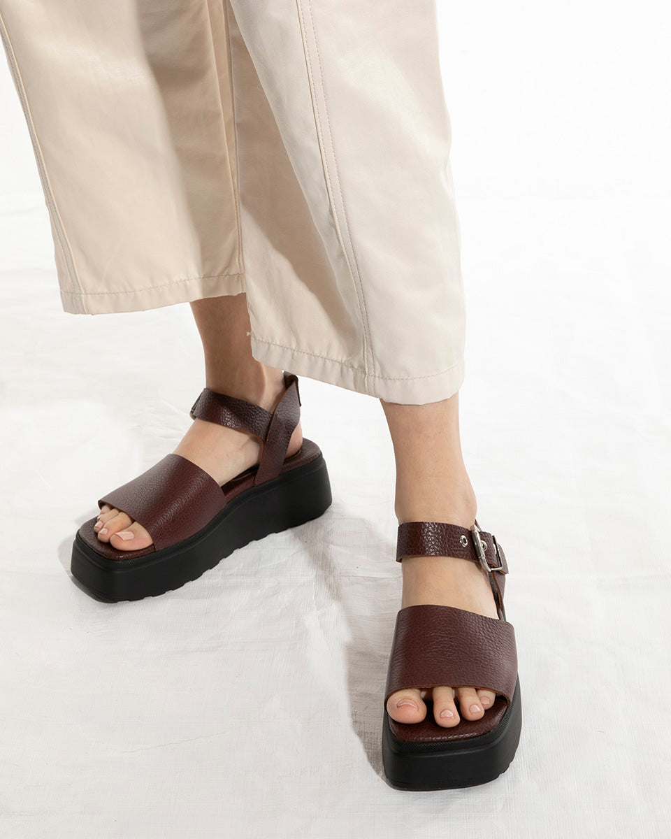 LENA es una sandalia de cuero con plataforma. Tiene una faja ancha de cuero graneado y está forrada en cuero. El talón abierto y la pulsera con hebilla metálica regulable aseguran un calce firme y adaptable. Con estética moderna y urbana, LENA es ideal para usar todos los días: aporta altura, confort y un look fresco que se adapta a jeans, vestidos o conjuntos más arreglados. Una sandalia versátil y resistente, hecha para acompañarte toda la temporada.