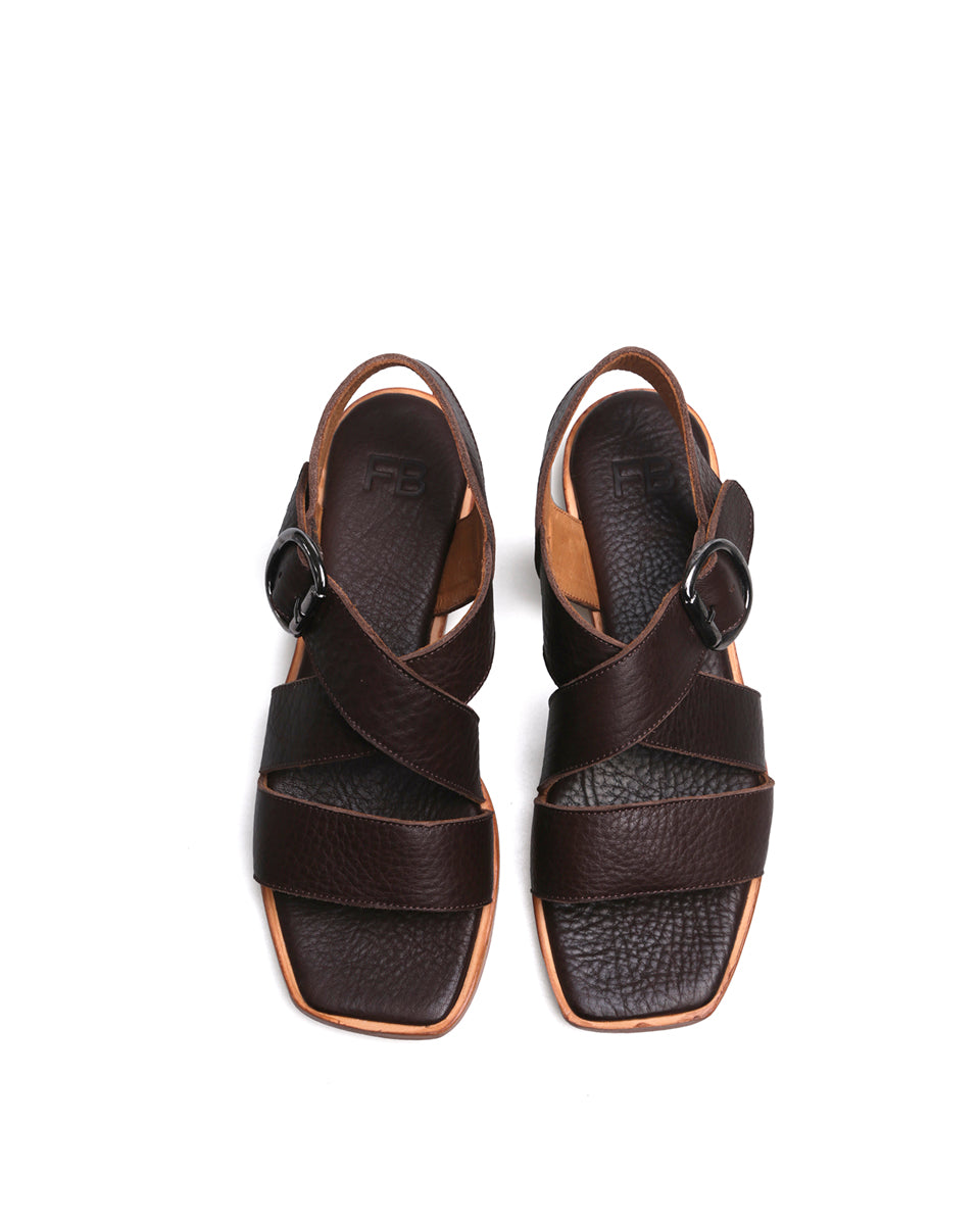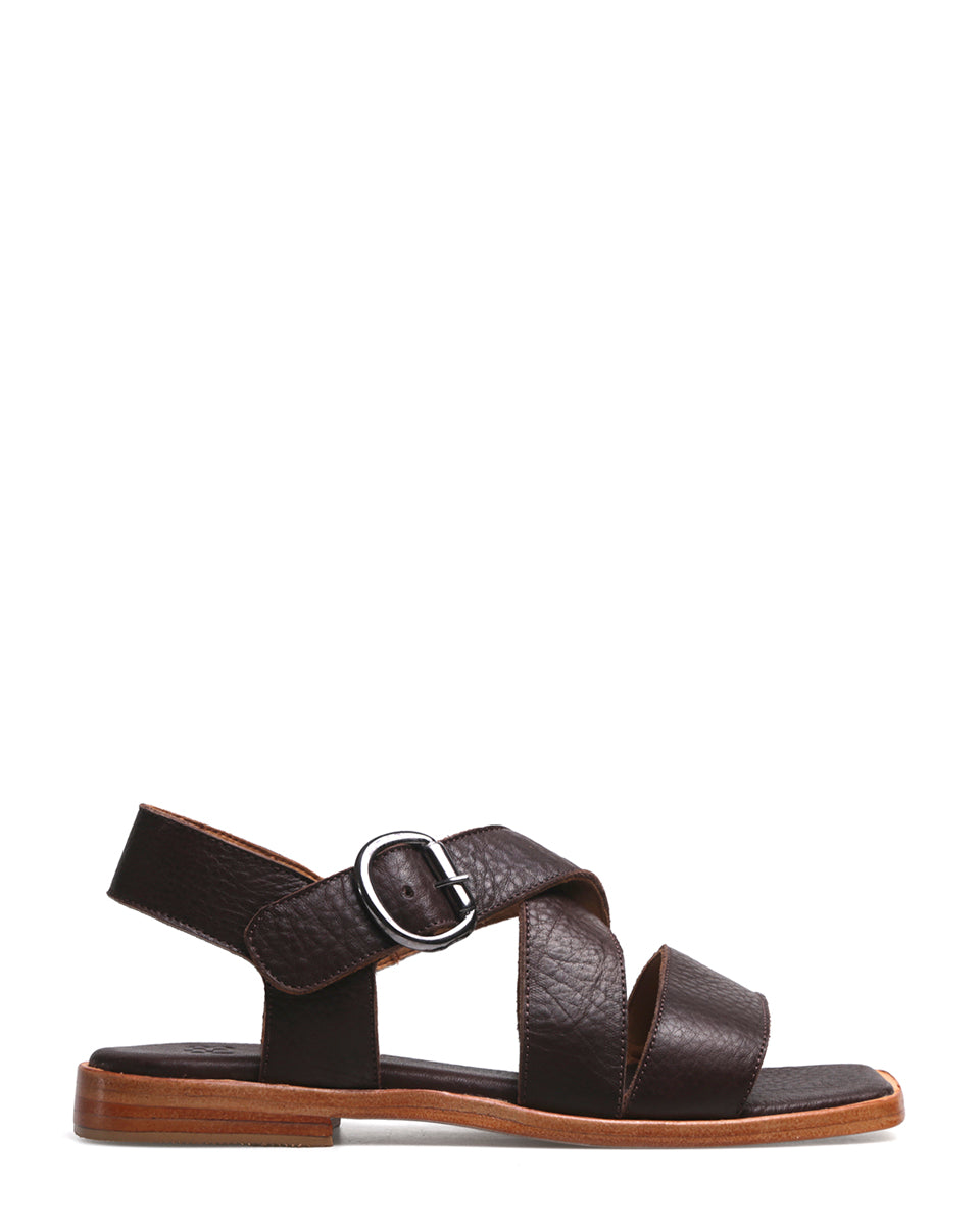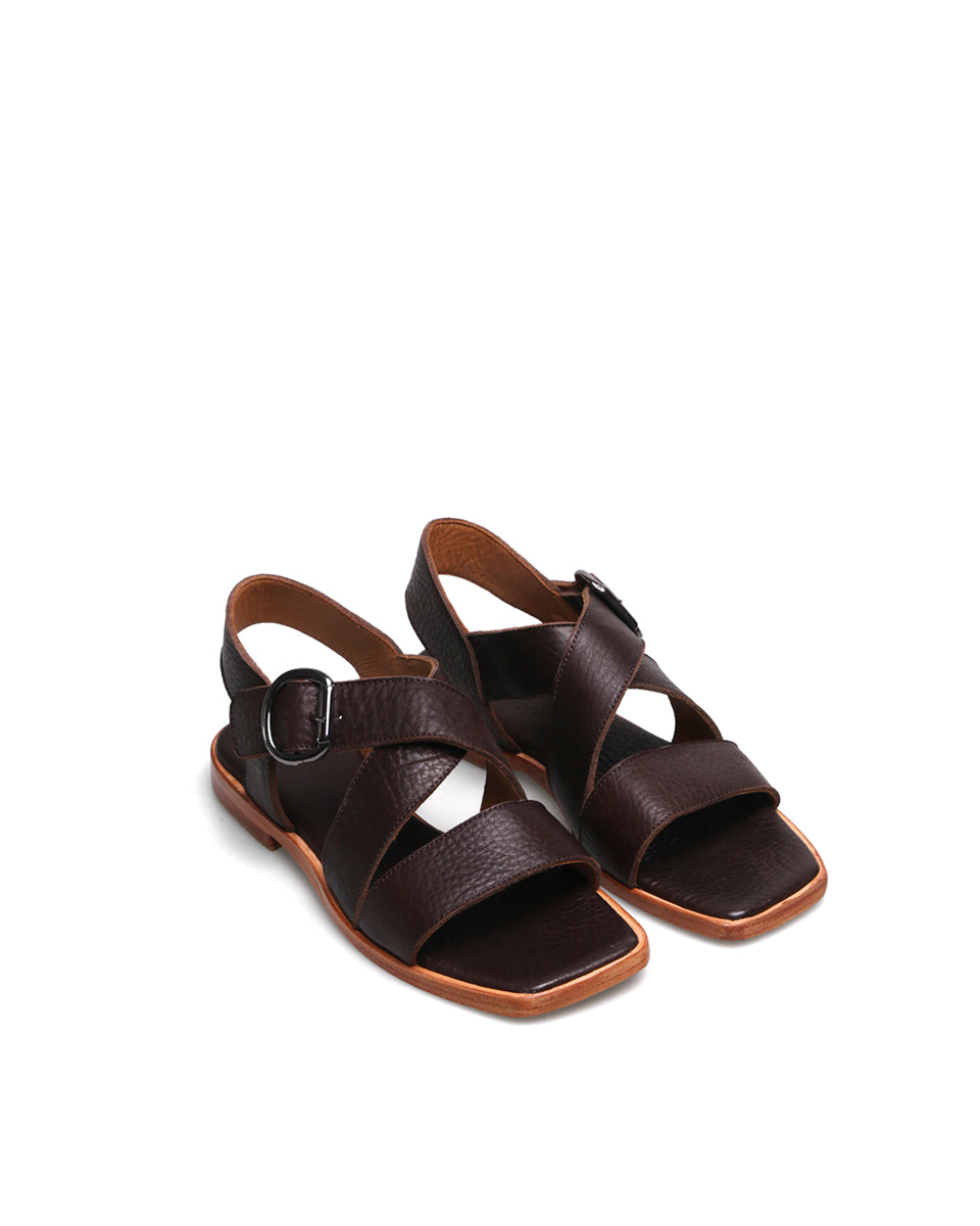 LENNER es una sandalia clásica y atemporal, realizada en cuero con acabado rústico y suela en cuero natural. Sus tiras cruzadas con hebilla de níquel aportan carácter, mientras que la puntera cuadrada y el pequeño taquito con tapa de goma la hacen práctica y cómoda para todos los días.
