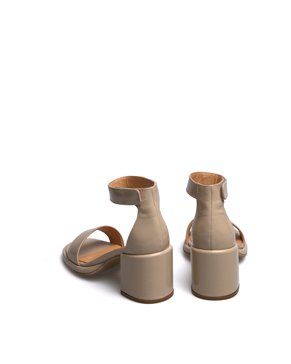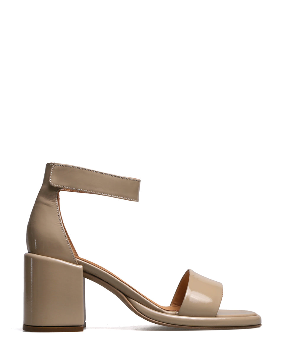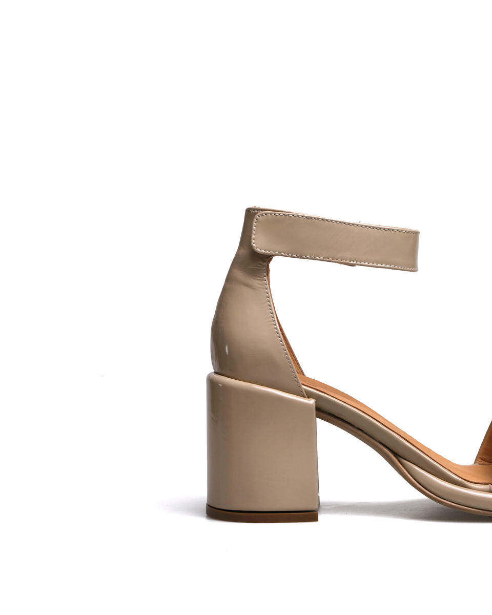 MARGOT es una sandalia de vestir con plataforma. Está realizada en charol de cuero y forrada en cuero. La base aporta altura y comodidad ya que el taco se compensa con la plataforma. Su estructura posee una tira recta en la zona de los dedos y se fija al tobillo con su talonera y tira con velcro. MARGOT es una sandalia tan cómoda como elegante y atemporal!