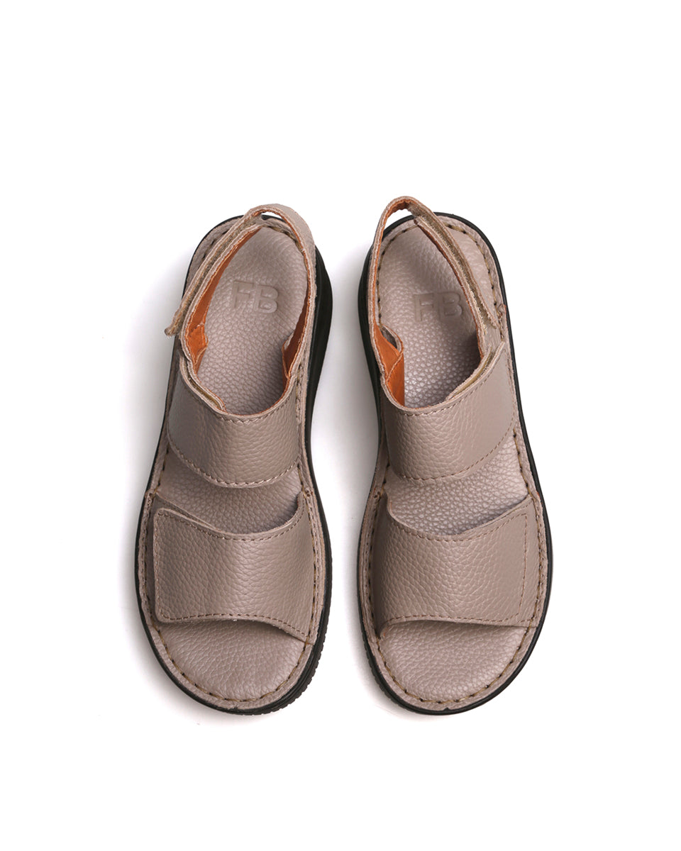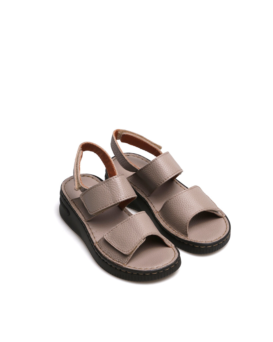 NUNA es una sandalia pensada para la comodidad diaria. Tiene base flexible de poliuretano y plantilla mullida que acompaña la pisada. Sus tiras anchas con cierre de velcro permiten un calce regulable, adaptable también a pies anchos. Confeccionada en cuero graneado, es ideal para un uso frecuente y confortable.