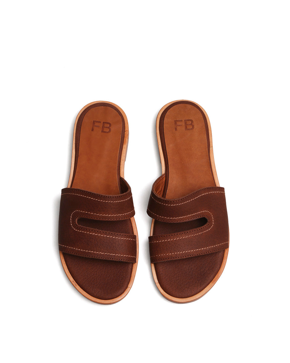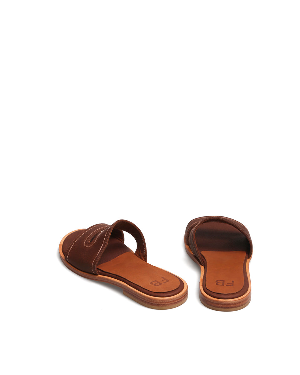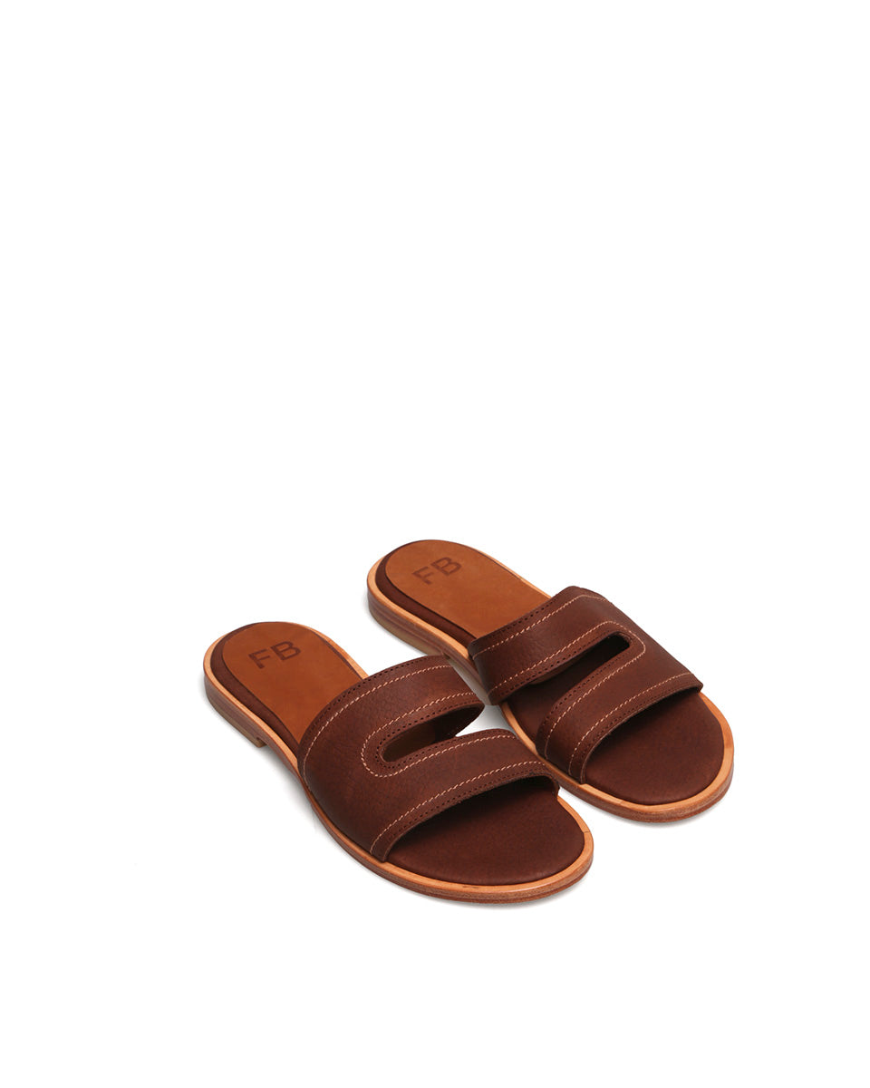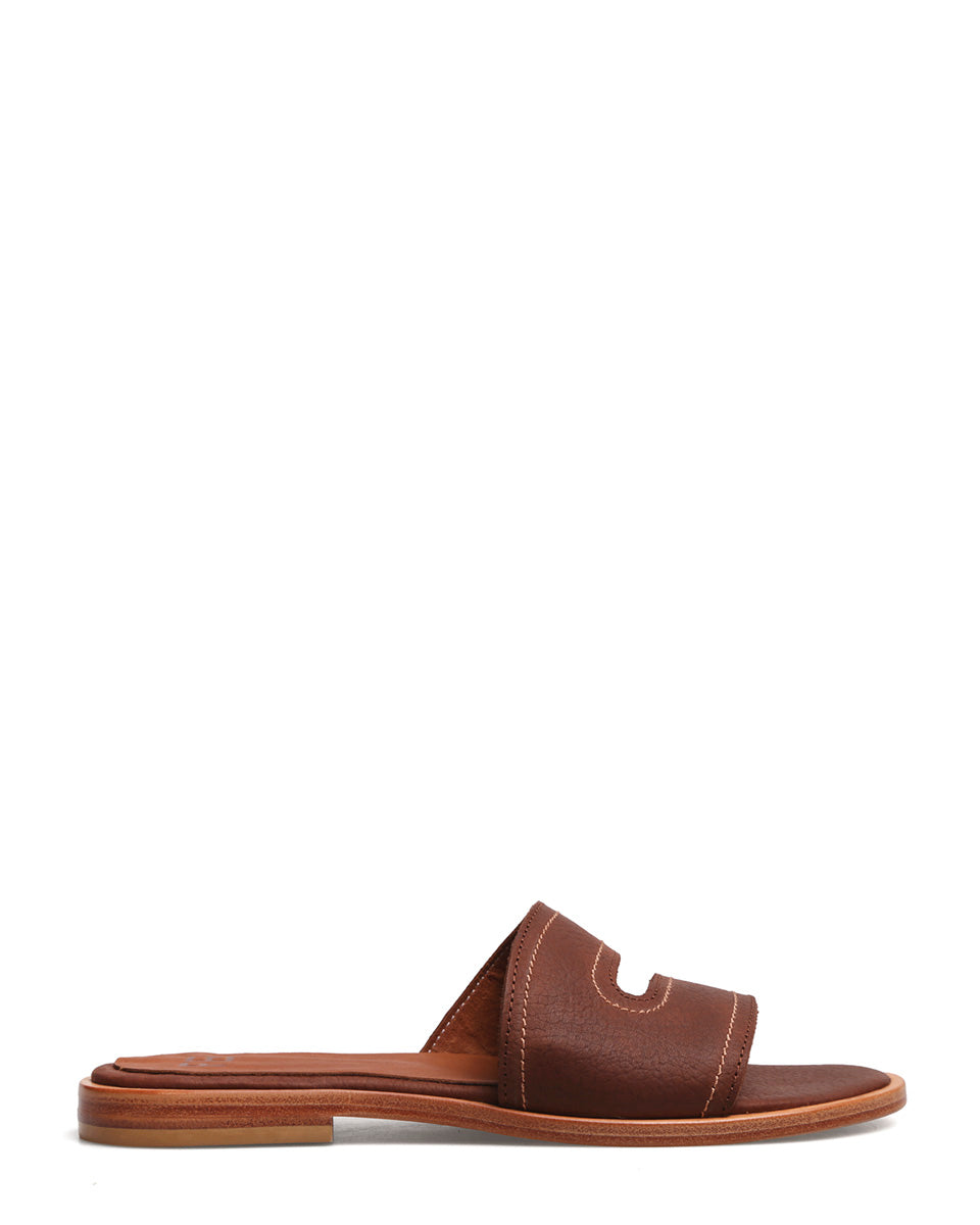 OLA es una sandalia plana realizada en cuero con pespuntado a la vista. Su diseño por un lado es clásico, pero a la vez tiene líneas curvas y fluidas que suavizan su estructura. La base es elegante, con un pequeño taco. OLA es un ítem práctico y sencillo de llevar, ideal para darle un toque a cualquier conjunto de verano.