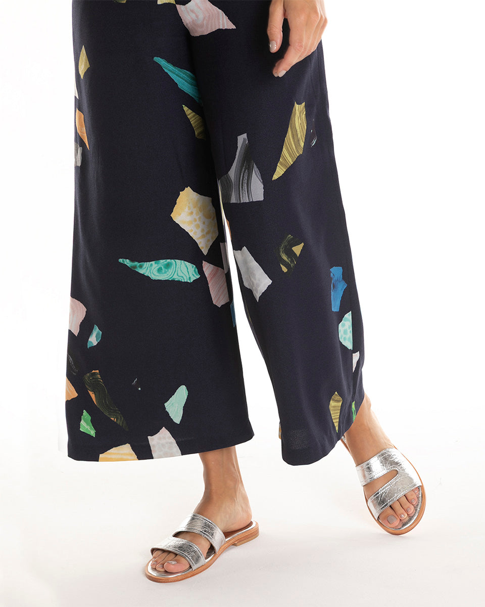 OLA es una sandalia plana realizada en cuero metalizado. Su diseño por un lado es clásico, pero a la vez tiene líneas curvas y fluidas que suavizan su estructura. La base es elegante, con un pequeño taco. OLA es un ítem práctico y sencillo de llevar, ideal para darle un toque a cualquier conjunto de verano.