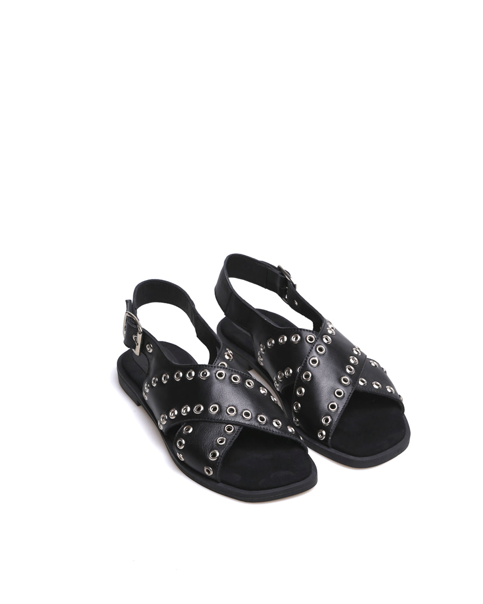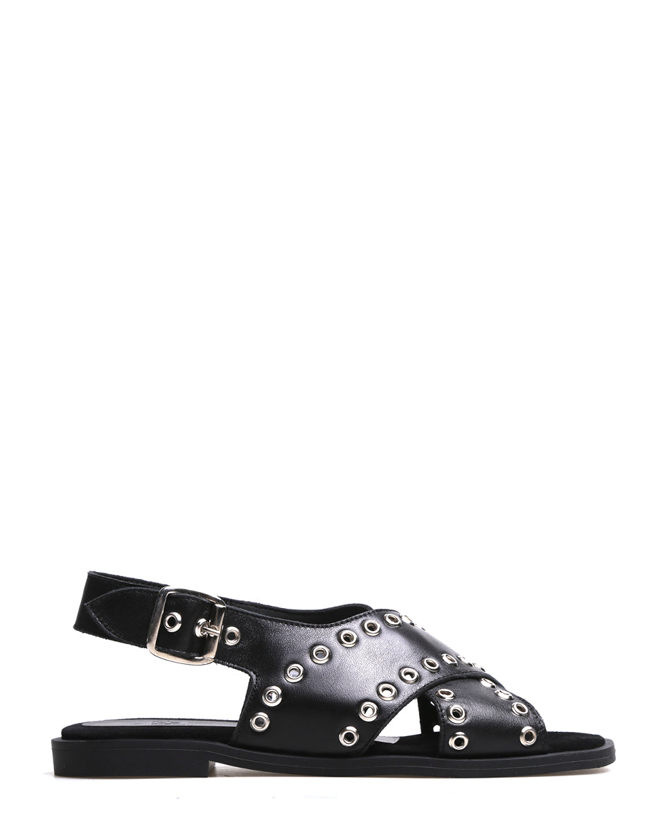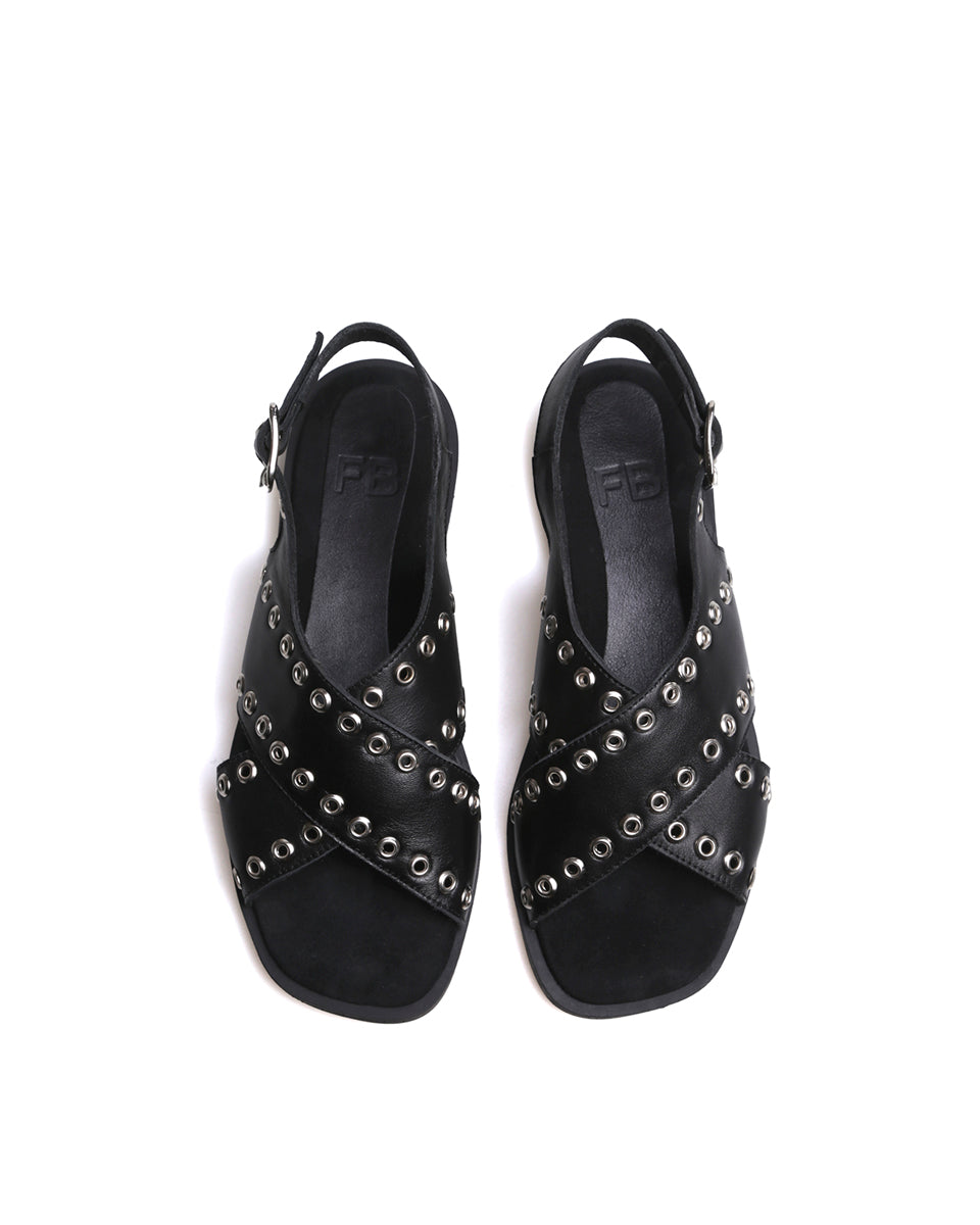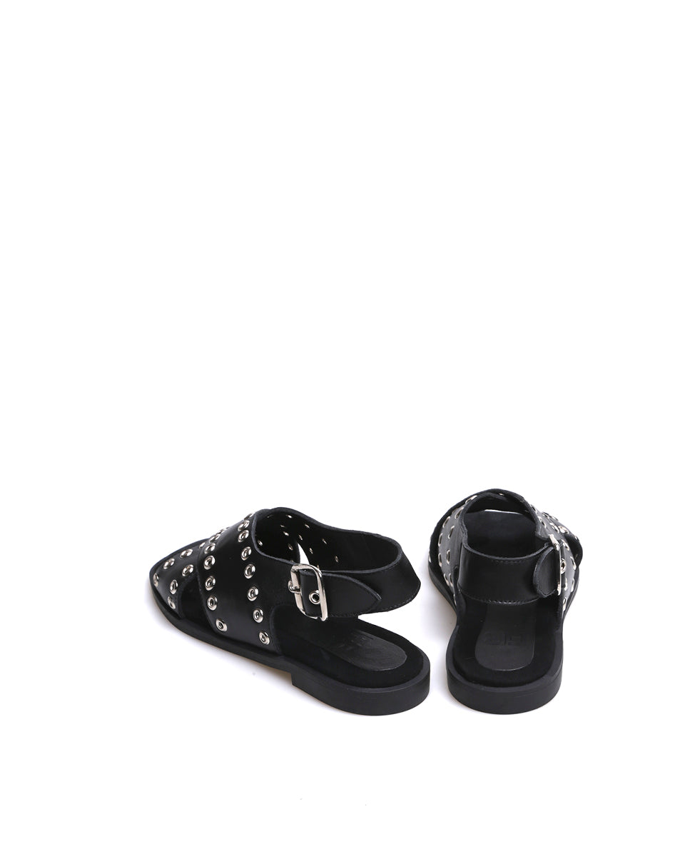 RITA es una sandalia plana y flexible con base de goma. Su capellada de charol forrado en cuero combina tiras cruzadas con hebilla al tobillo, asegurando un buen calce. Los herrajes metálicos plateados suman un aire moderno y distintivo. Con una horma que resulta sentadora incluso en pies anchos o con empeine alto, RITA es una opción cómoda y versátil para usar todos los días.