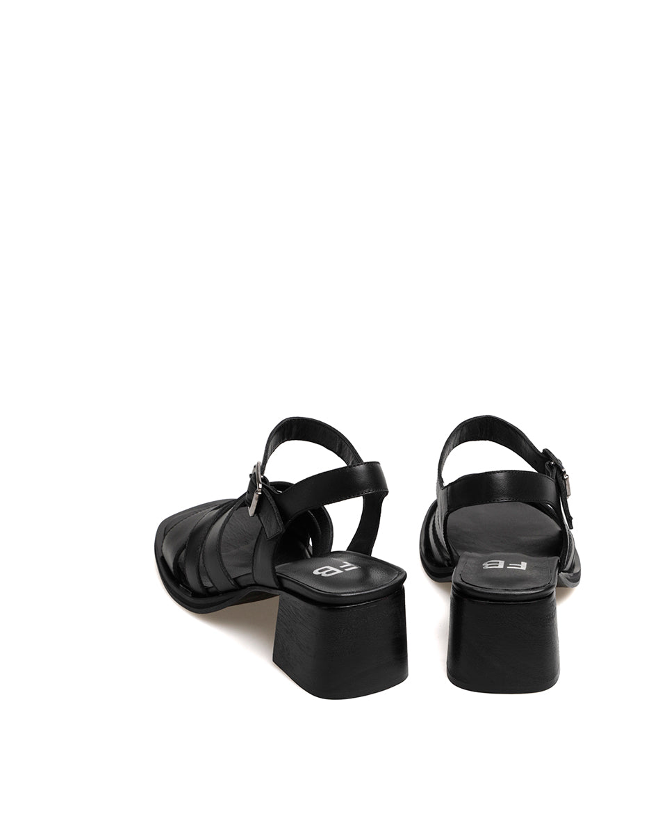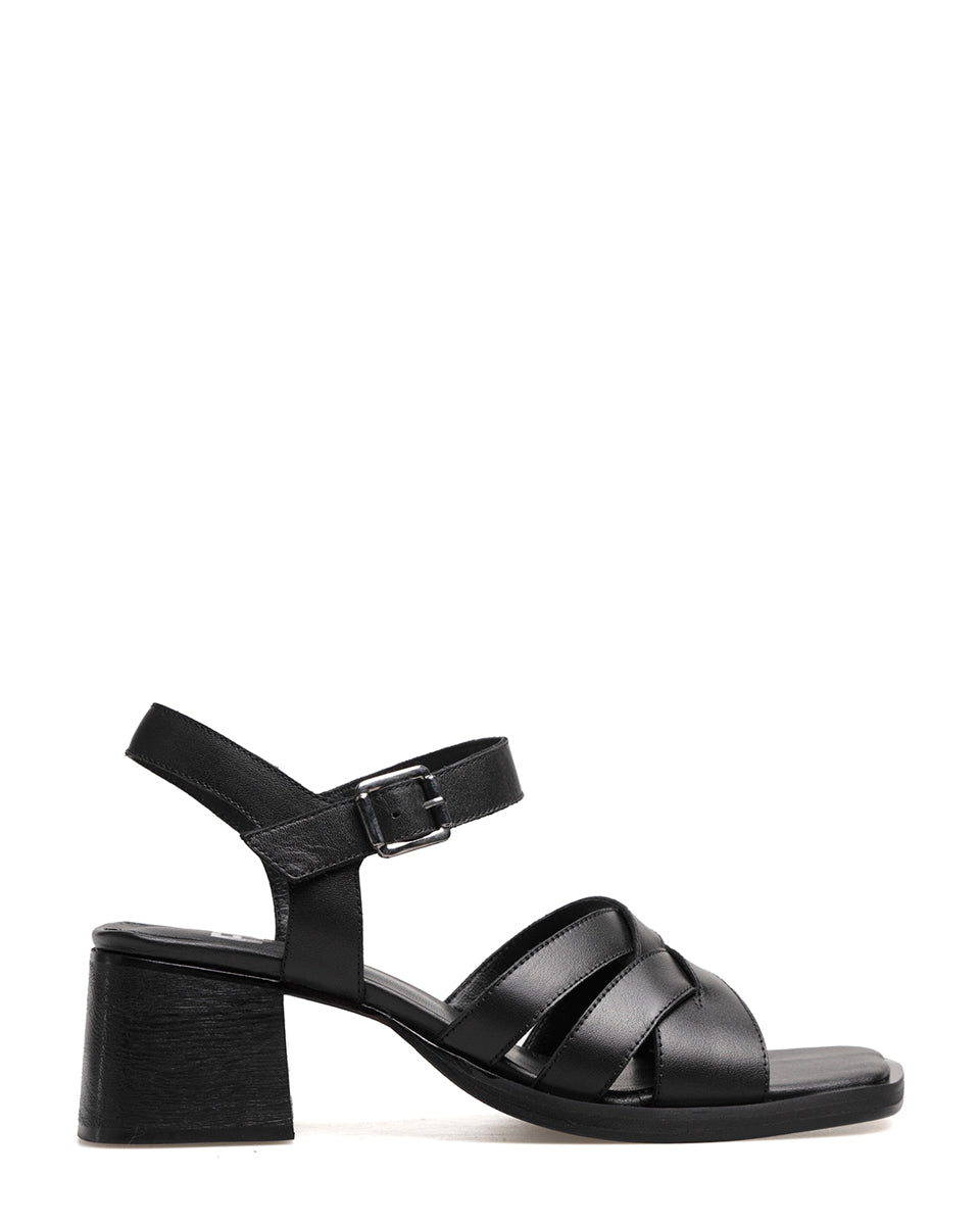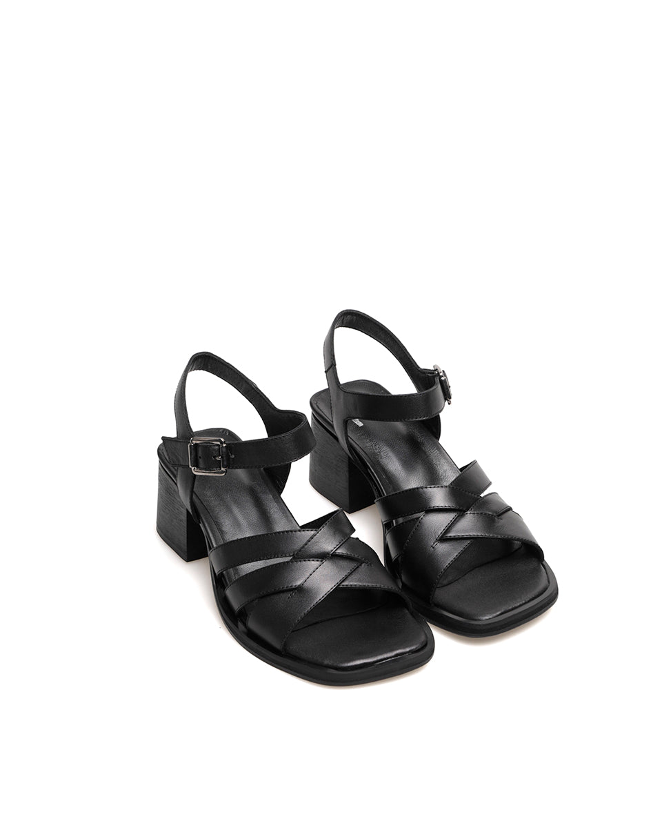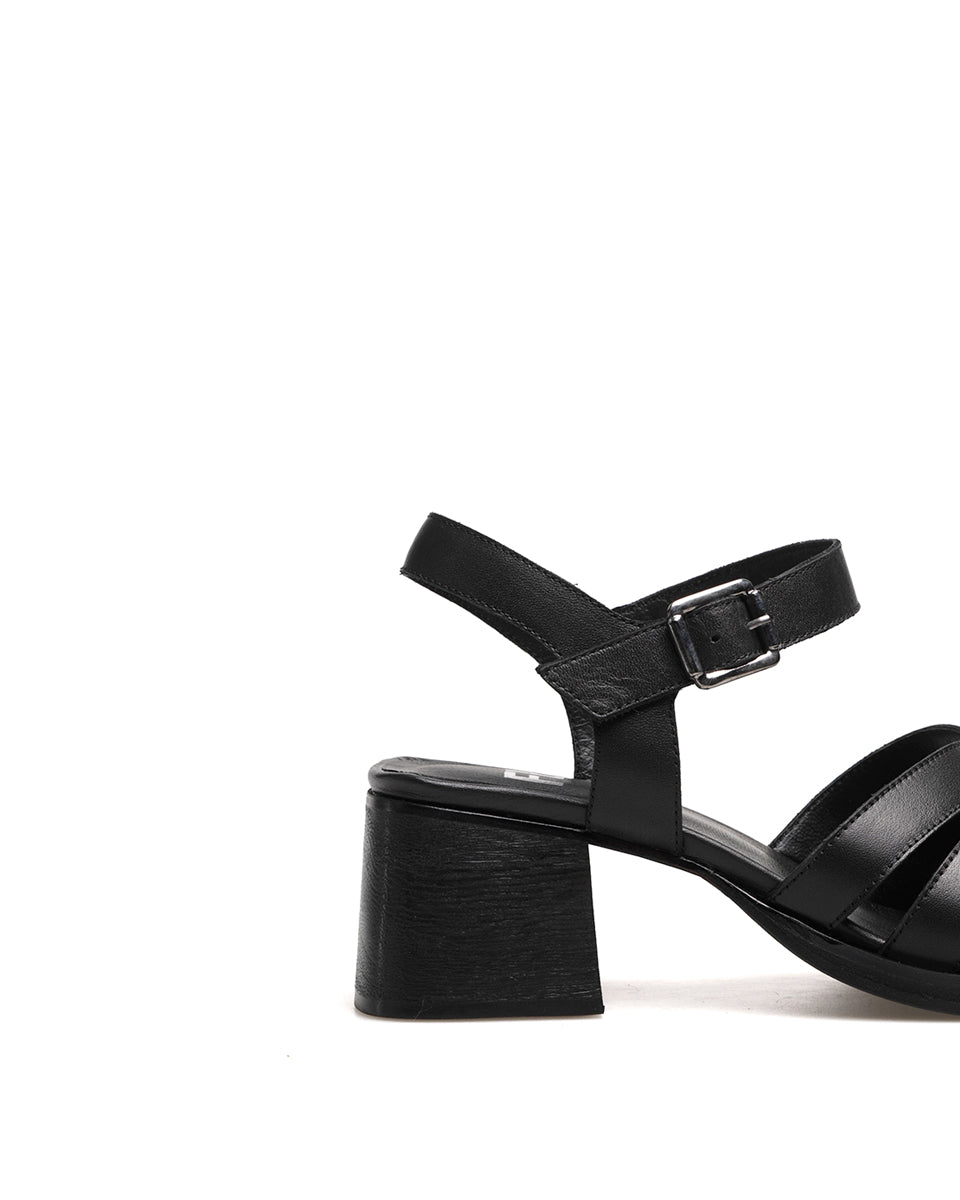 SIMONE es una sandalia de vestir que permite llevarla tanto en ocasiones elegantes como en combinaciones más casuales. Su taco de madera lustrada en color negro y su diseño de tiras cruzadas con pulsera aportan comodidad y sujeción. La puntera cuadrada y el acabado en cuero liso realzan su perfil moderno y sobrio.