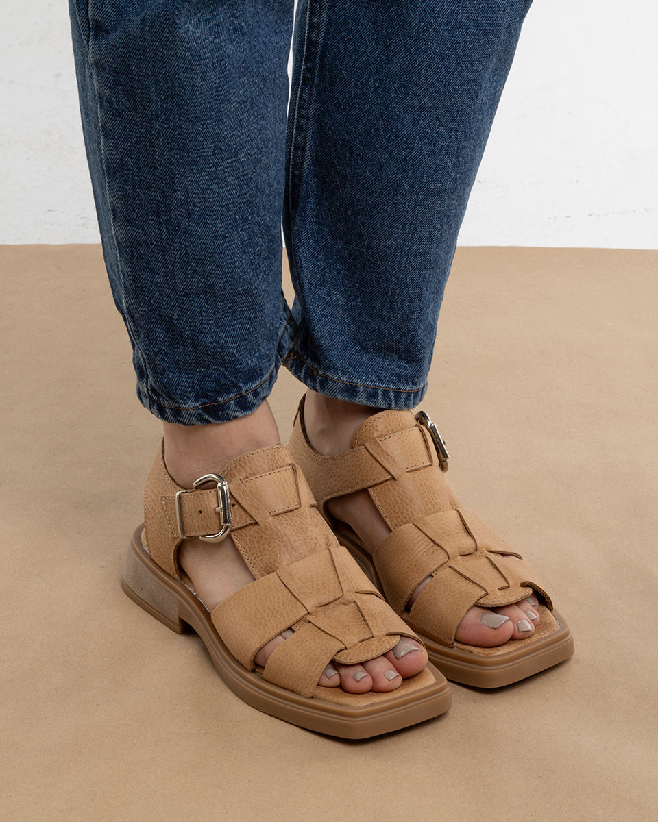 SIRUN es una sandalia tipo franciscana con base de goma. Está realizada en cuero vacuno con terminación natural, al corte. La base es antideslizante y flexible. SIRUN es una sandalia cómoda y clásica para uso frecuente.