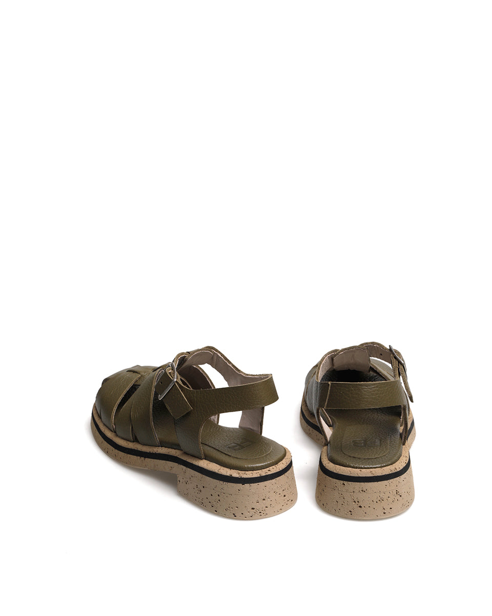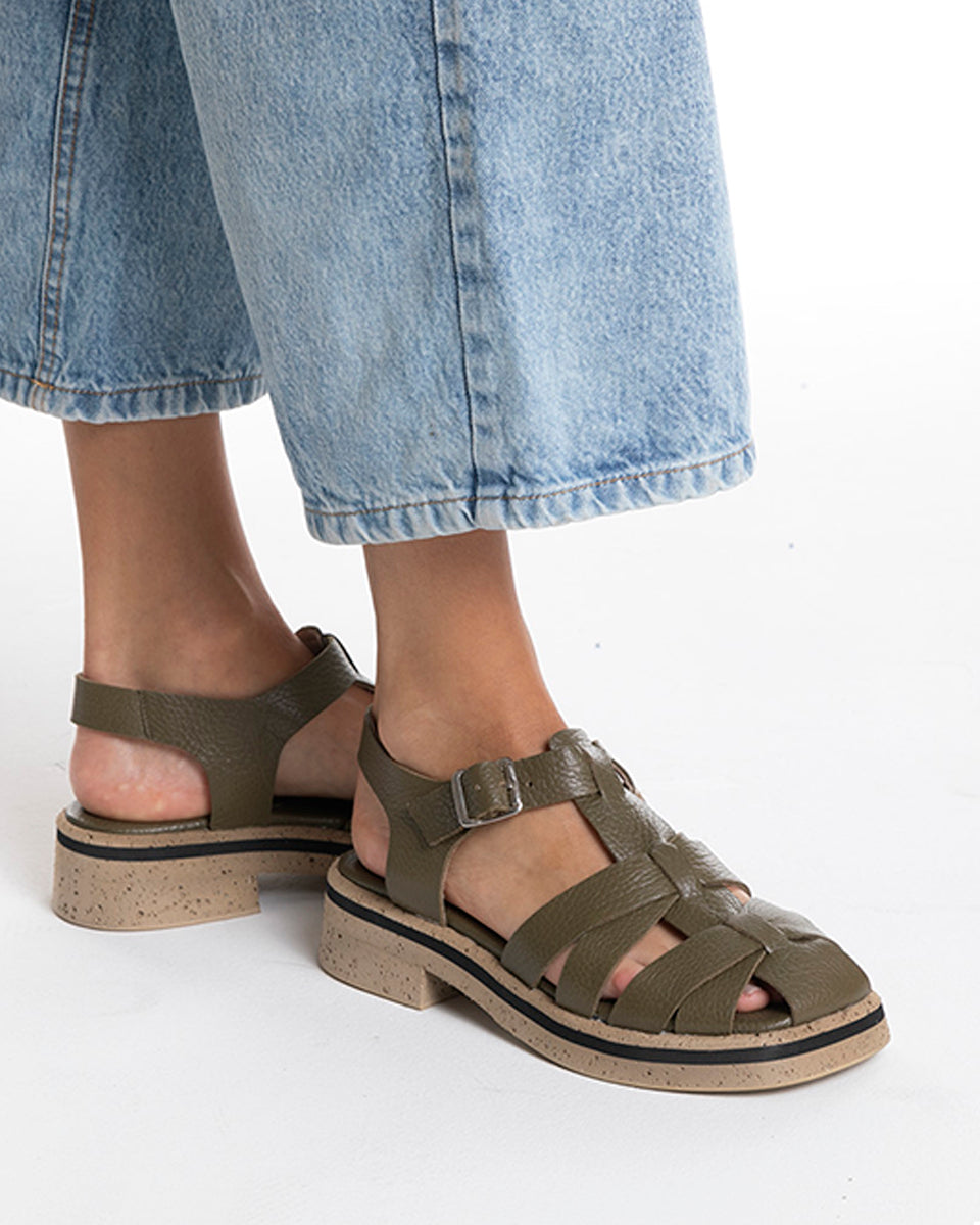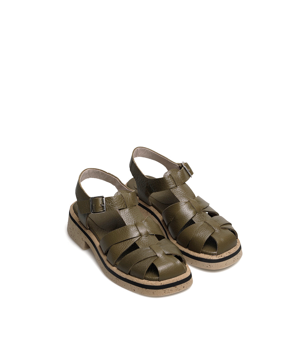 SUCA es una sandalia estilo franciscana de cuero con base artesanal de eva. Su diseño envuelve el pie con un efecto visual de zapato calado. La plataforma, liviana y contrastante, resalta el tono del cuero, mientras que la puntera suavemente cuadrada aporta un aire actual. Un modelo fresco y adaptable, que también podés personalizar sumando medias para un look distinto.