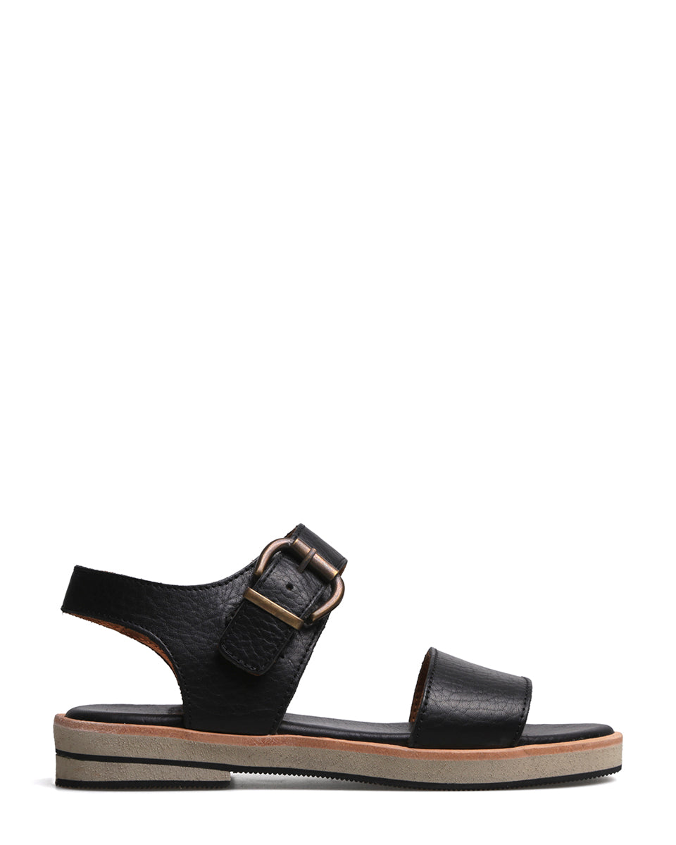 SUTON es una sandalia de cuero con acabado natural y rústico. Liviana y cómoda, cuenta con suela de eva artesanal y suelín de caucho antideslizante. Su diseño clásico, de horma redondeada y poca altura, la convierte en un básico versátil para el día a día.
