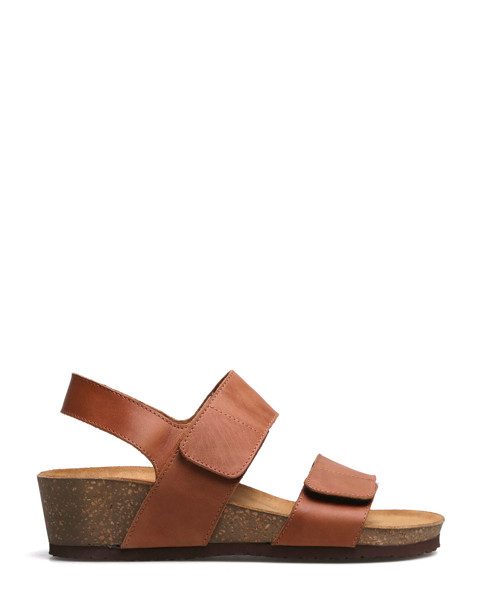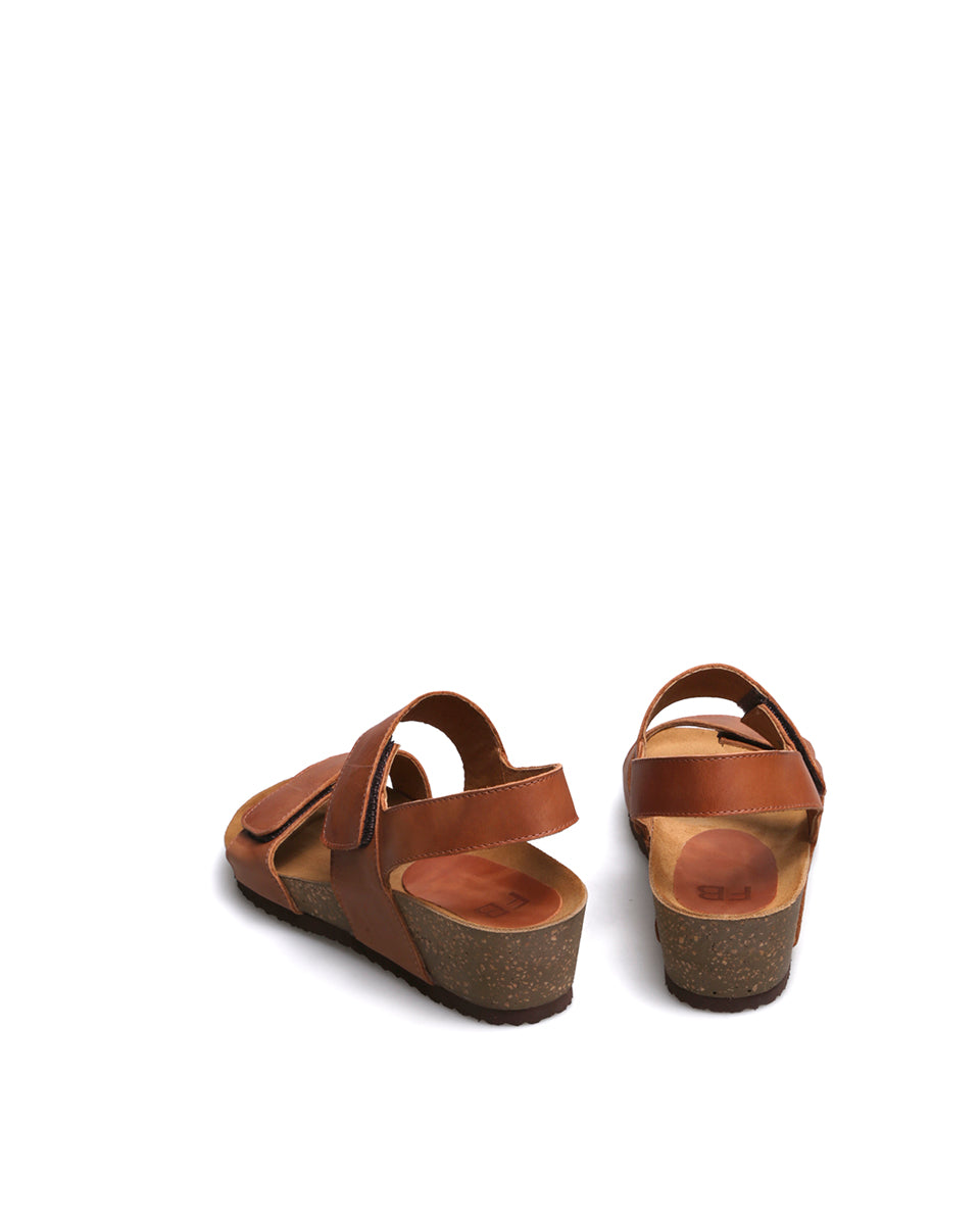 VIENA es una sandalia con base de corcho y altura media. Sus tiras paralelas están realizadas cuero vacuno y forradas en cuero. Se sujeta con una tira en el talón que se ajusta con velcro. La suela es liviana, firme y armada. VIENA es un calzado muy práctico que se acomoda fácilmente al pie de cada una.