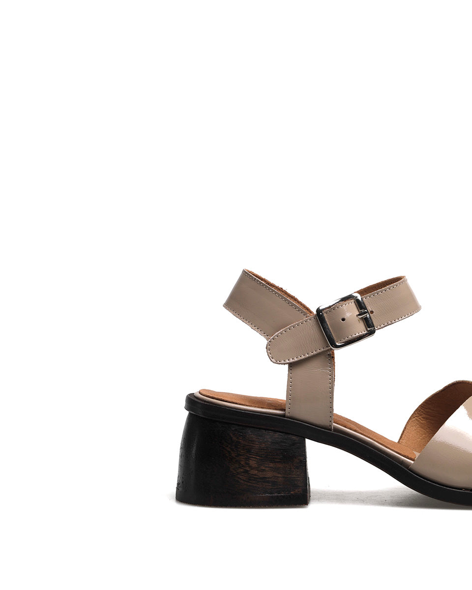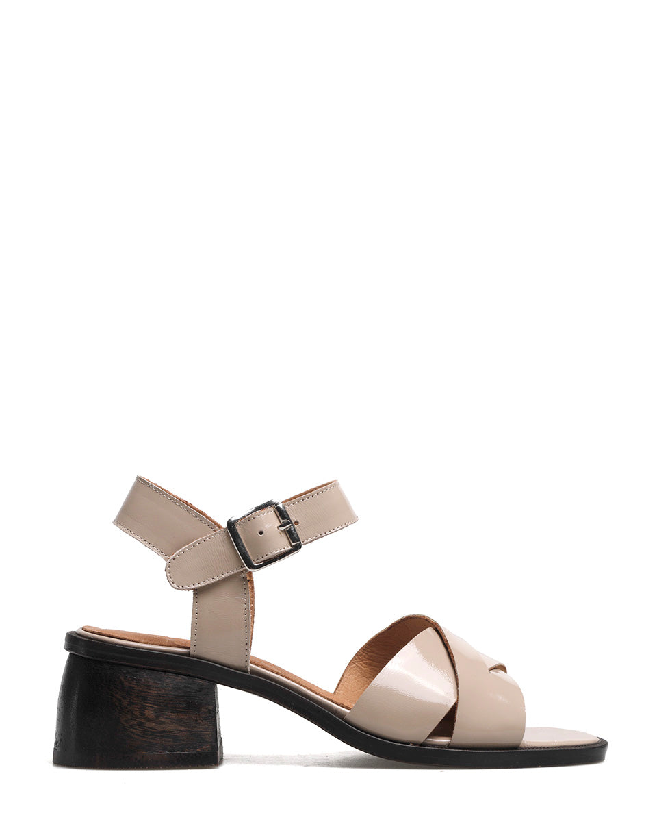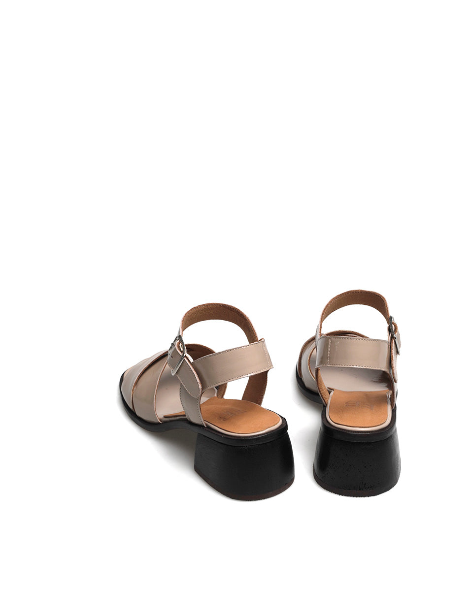 VILE es una sandalia de charol con taco bajo y tiras cruzadas. Es un calzado súper versátil que resulta cómodo, elegante y fácil de combinar a la vez.