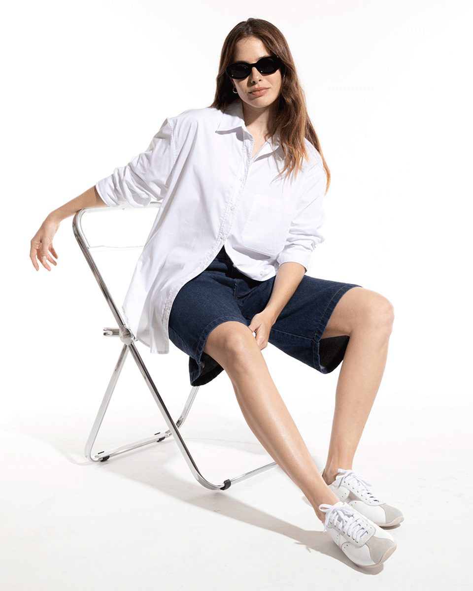 REINE es una zapatilla que combina materiales y texturas con un diseño actual y distintivo. De base chata y puntera levemente cuadrada, resulta cómoda y sentadora incluso para pies más anchos. Una opción versátil para sumar estilo a tus looks de todos los días.