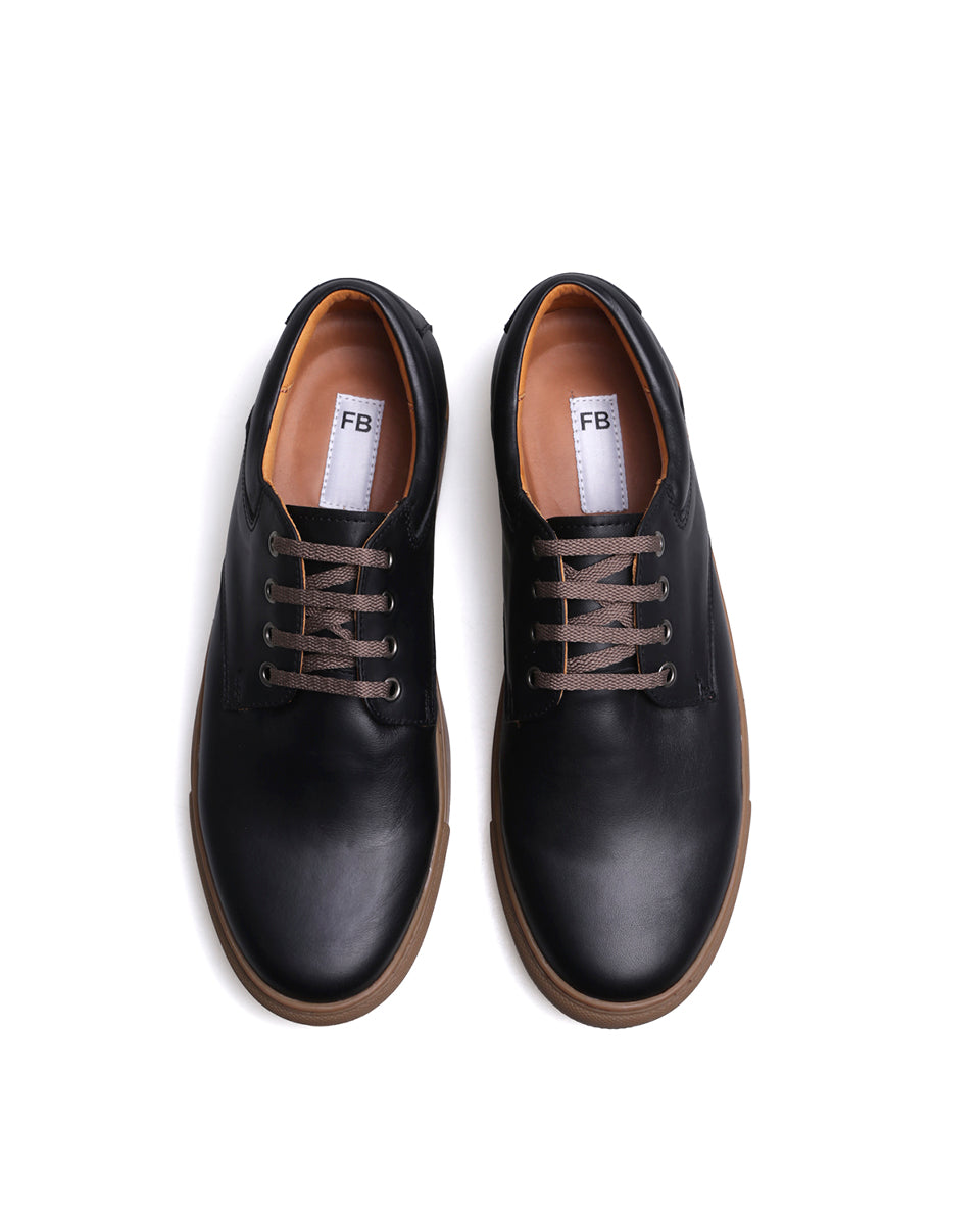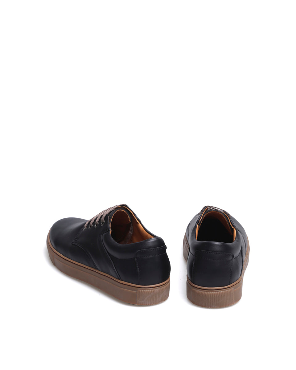 RODIO es una zapatilla urbana básica. Está realizada en cuero vacuno color marrón, forrada en cuero. La suela de goma se encuentra pegada y cosida para una mayor durabilidad. Por su diseño RODIO es un calzado que, al tener sólo cuatro ojales, da un efecto entre zapato y una zapatilla.
