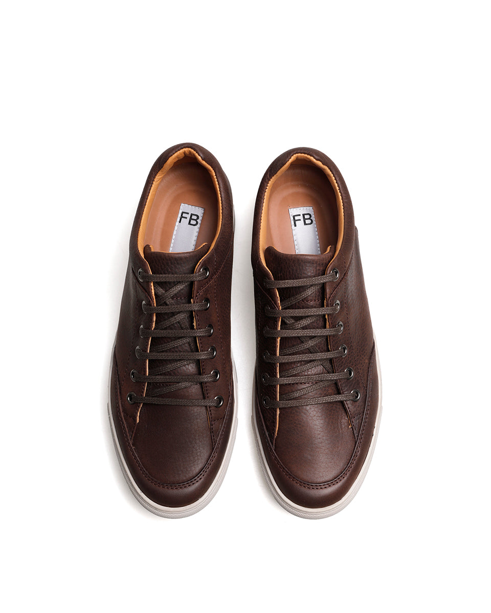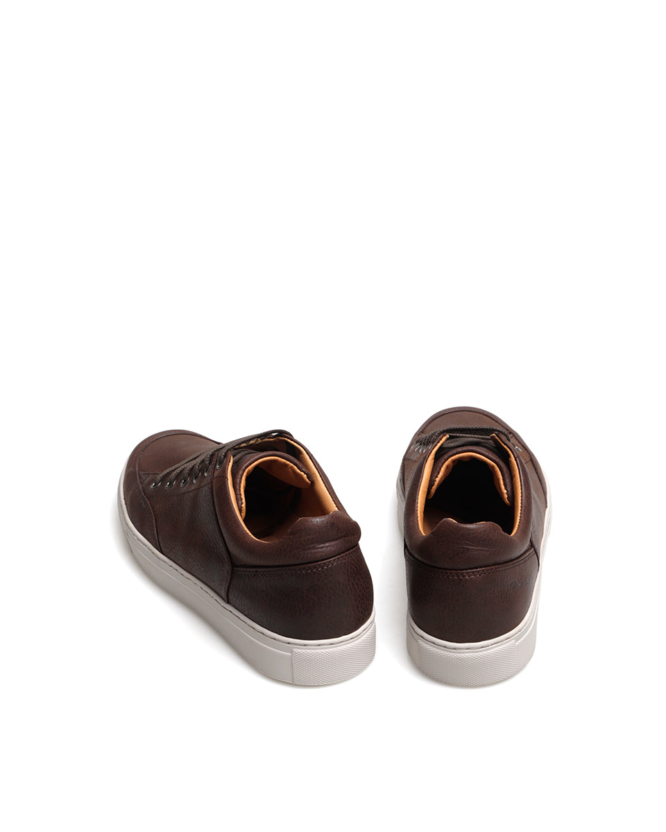 SAMARIO es una zapatilla urbana de cuero vacuno con acabado mate, forrada en cuero. Tiene plantilla acolchada y desmontable, y su suela de goma, pegada y cosida, garantiza resistencia y durabilidad. Con cordones de algodón encerado y ojales metálicos, es un modelo clásico y atemporal, ideal para uso frecuente.