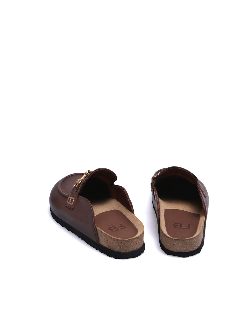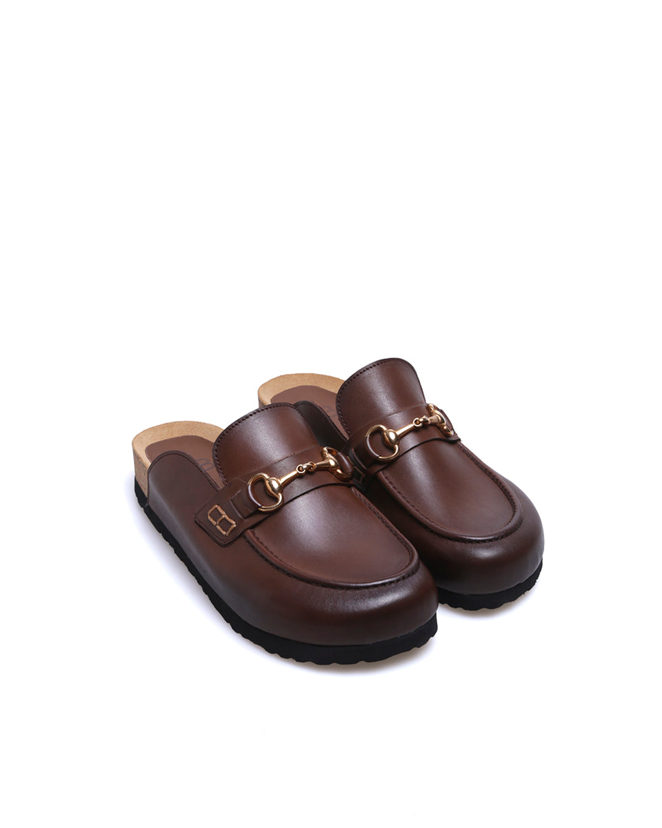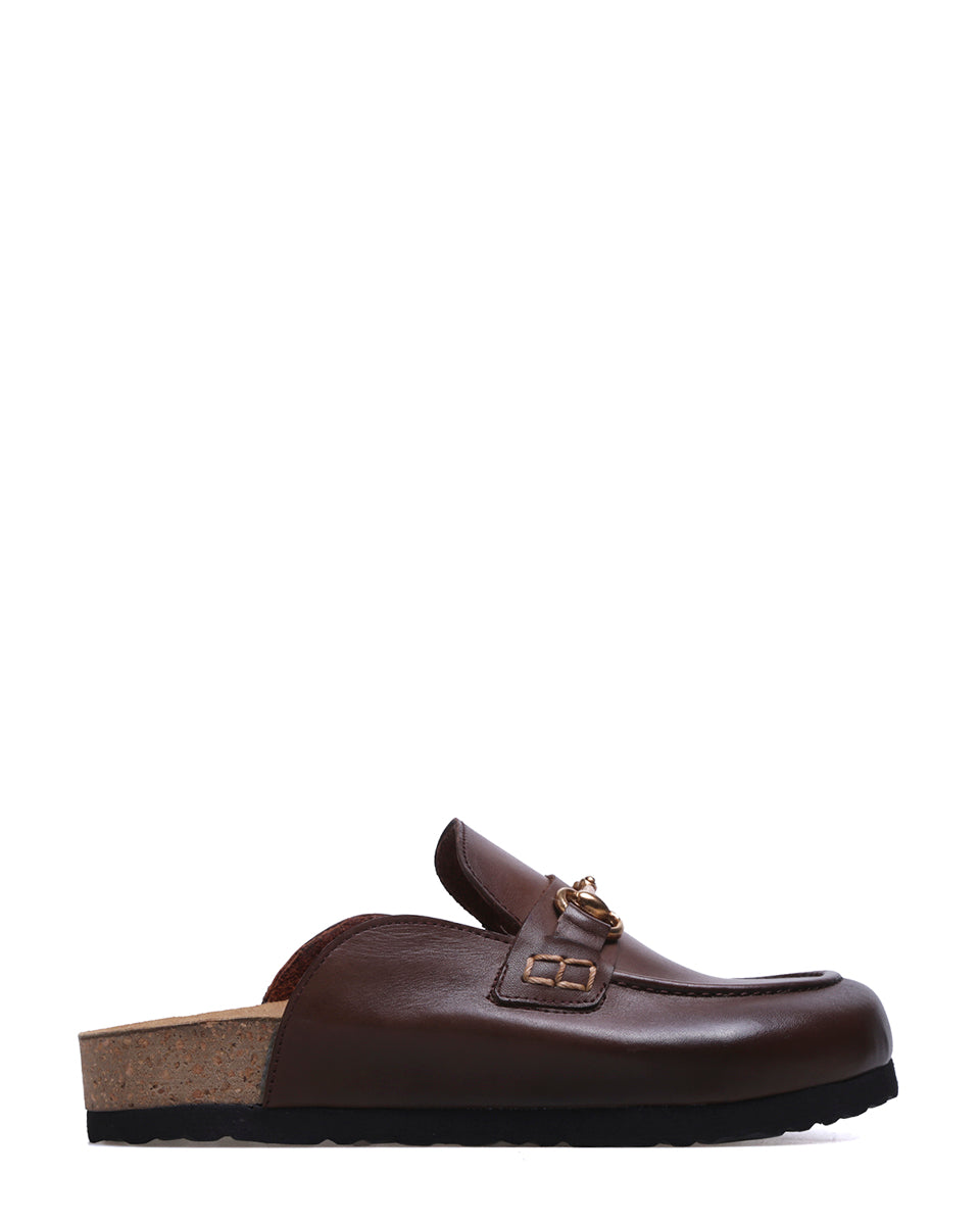ADAMO es un zueco con estribo y base anatómica. Está realizado en cuero liso y forrado en cuero. Cuenta con un estribo metálico color dorado. La base es ergonómica, liviana y casual. ADAMO combina la practicidad del zueco con la sobriedad y elegancia de un mocasín.