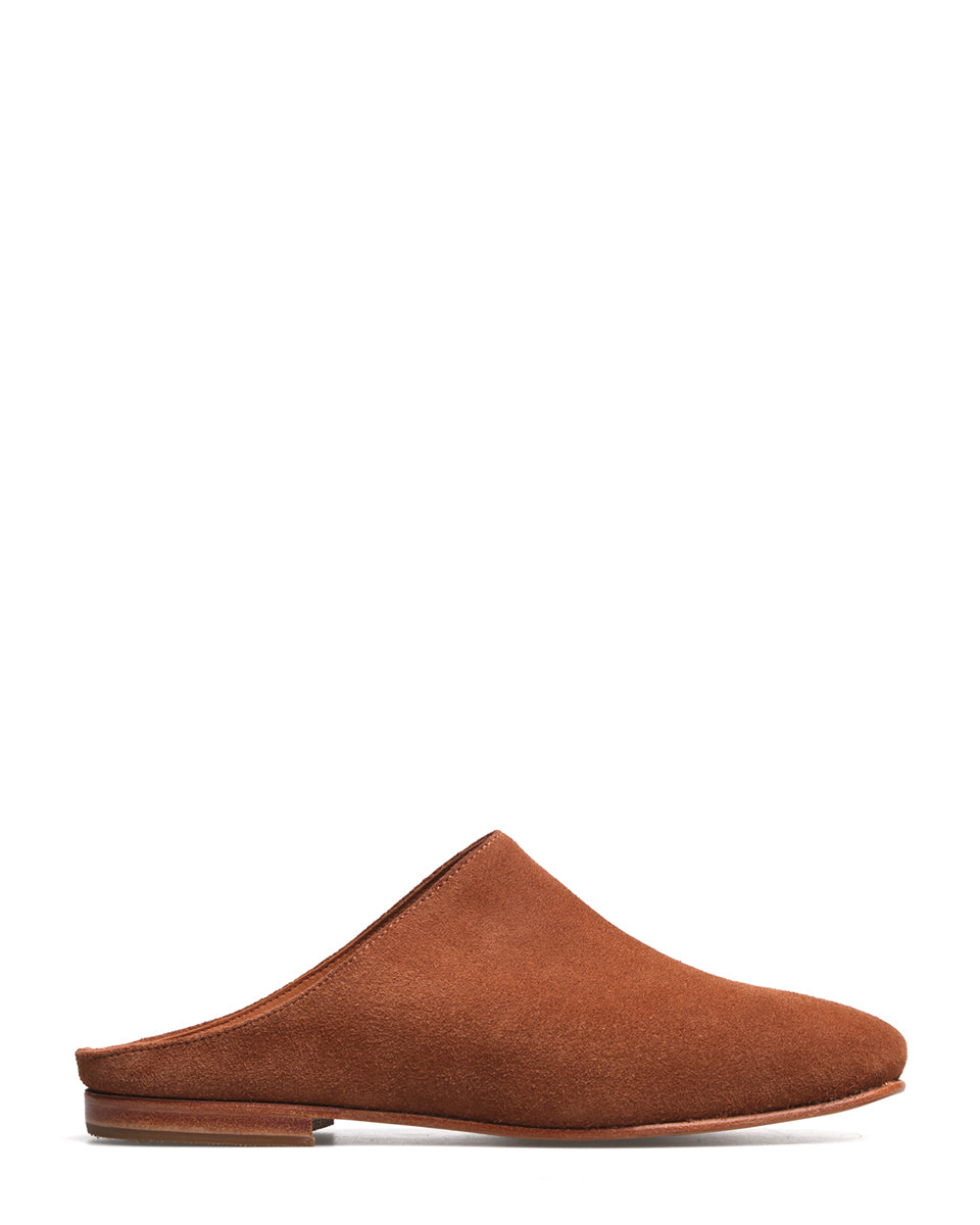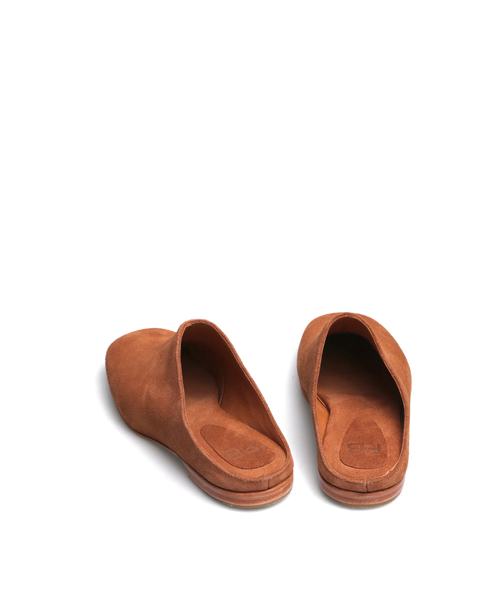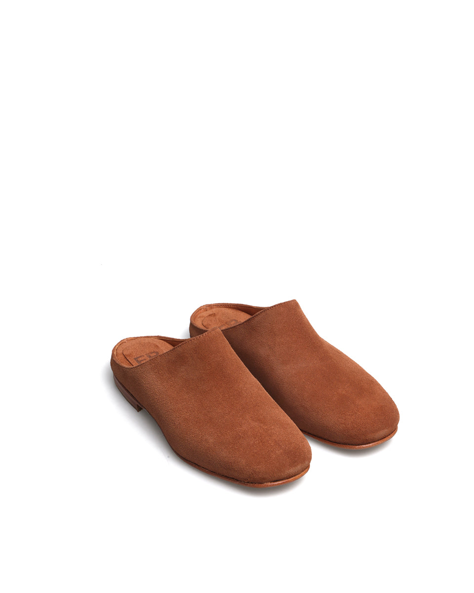 BE es un zueco de gamuza con forro de cuero. Es práctico y cómodo, con una línea minimalista y estilizada. La puntera ligeramente cuadrada y la suela de cuero realzan su estilo clásico y versátil, perfecto para acompañar distintos momentos del día a día.
